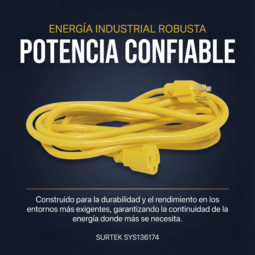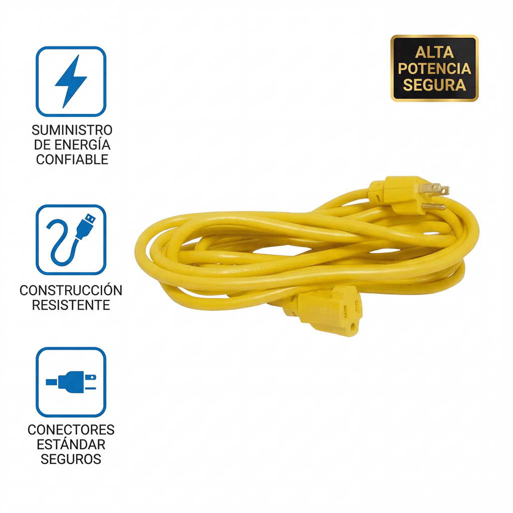 Extensión Eléctrica de Uso Rudo Aterrizada 15 metros / 127 V CA 10 A Máximo / Color Amarillo.