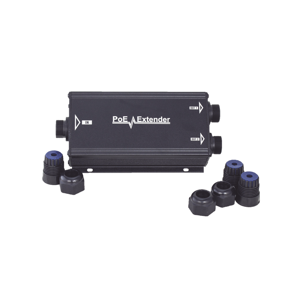Extensor PoE/ 100 Metros / Intemperie (IP66) / 60 Watts / 1 puerto @ 2 salidas a 30 W / No requiere fuente de alimentación adicional