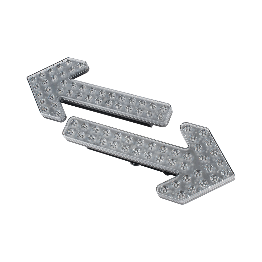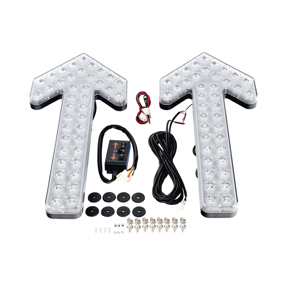 Las flechas son una advertencia direccional de alto rendimiento con los beneficios adicionales de una fuente de luz LED de bajo consumo de corriente, libre de mantenimiento y de larga duración. Cuenta con patrones de destello seleccionables a través del controlador en la cabina. La flecha de seguridad LED es la solución de iluminación de dirección de tráfico definitiva.