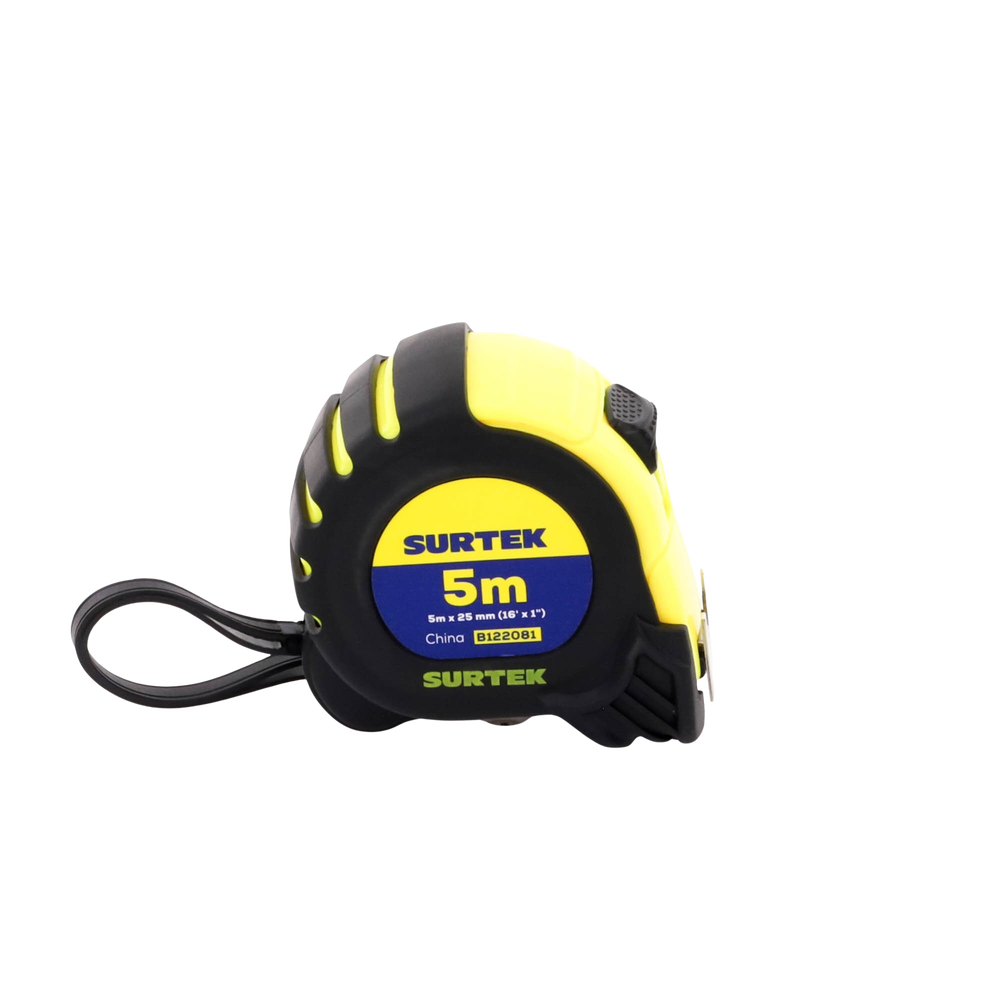 Flexometro anti impacto de 5 metros, cinta ancha con boton de freno.