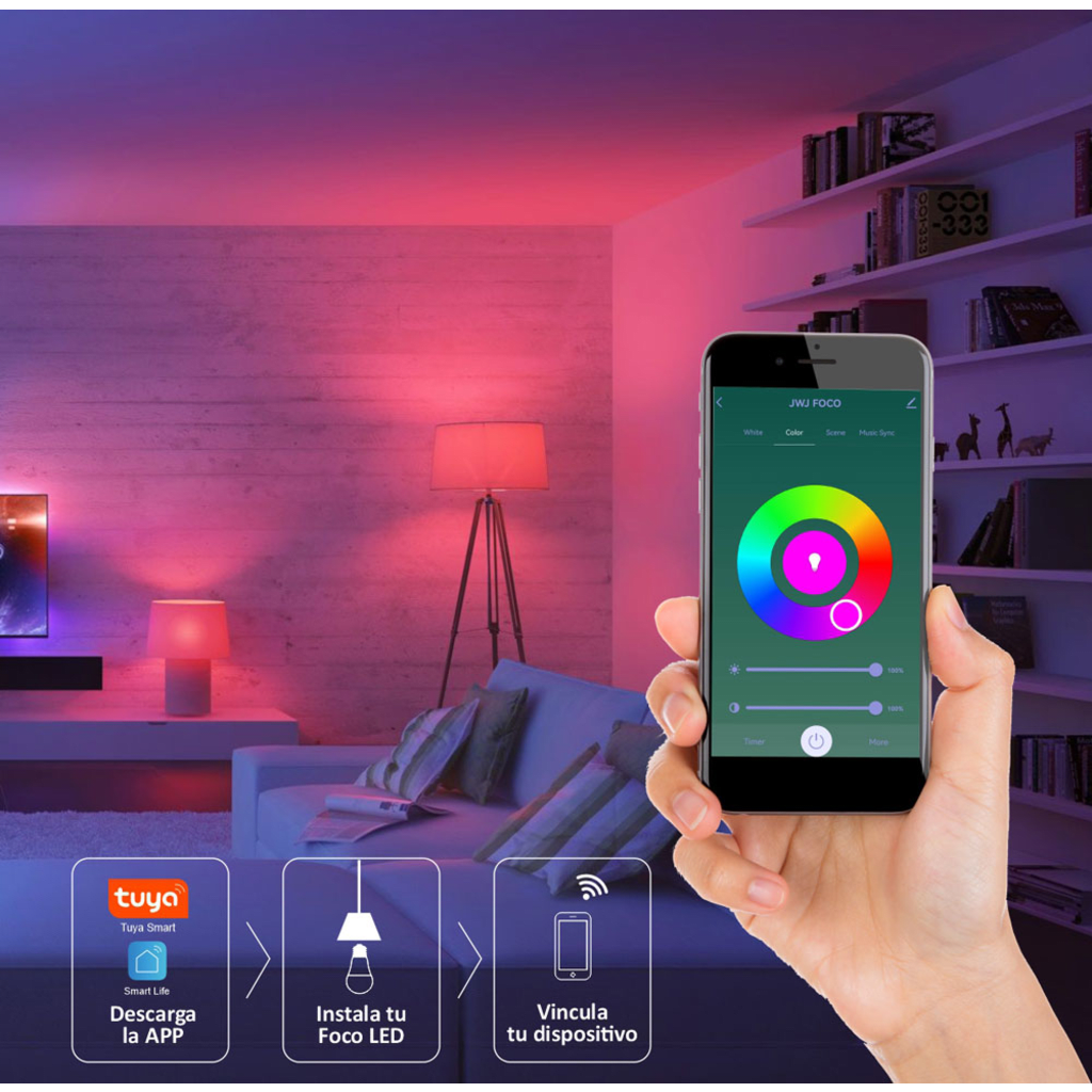 La lámpara LED Omnidireccional Smart de JWJ ofrece una solución de iluminación moderna con tecnología avanzada para tu hogar. Esta lámpara LED multicolor y ajustable en temperatura de color proporciona un ambiente ajustable a través de su aplicación móvil gratuita, ideal para un uso personalizable y eficiente en el consumo de energía.
