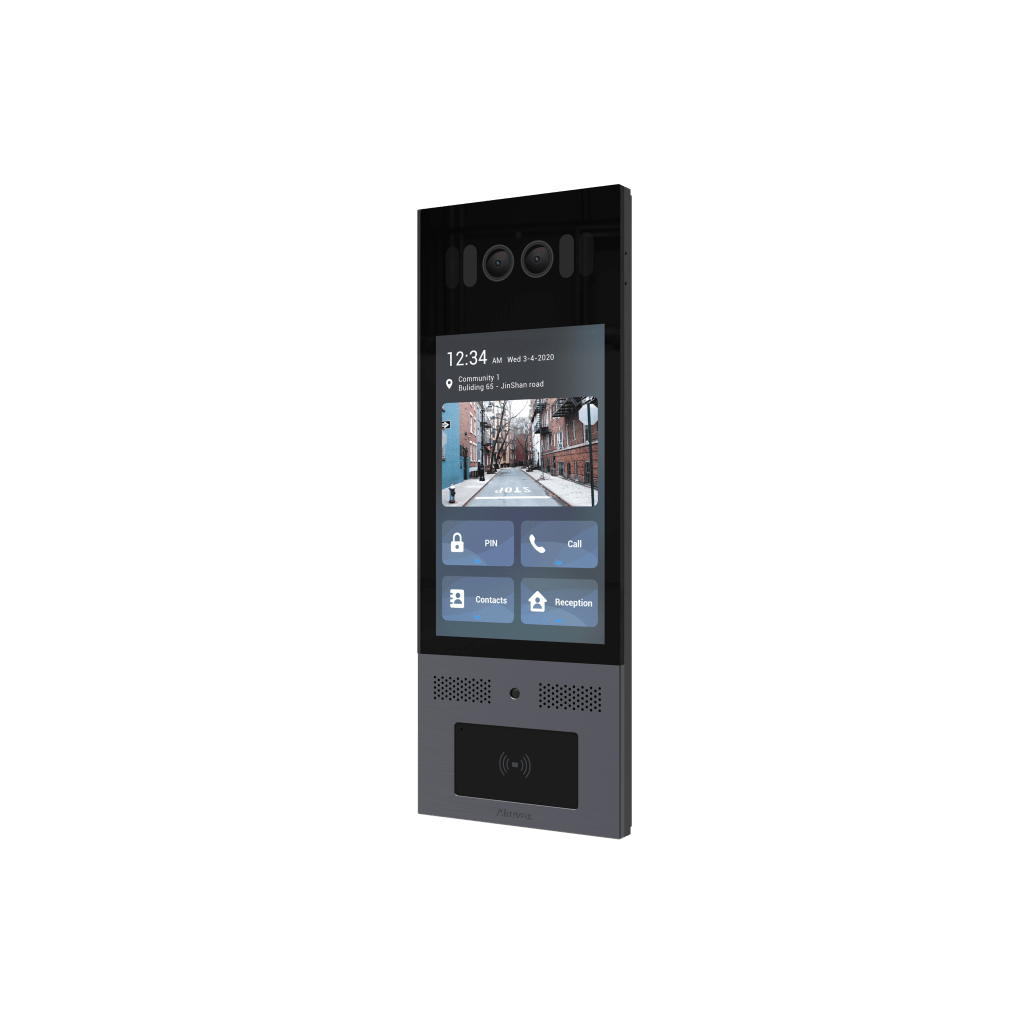 Frente de Calle Antivandálico IK10 / Administración 100% en la Nube / Notificación a APP / Llamada Telefónica / ANDROID / SIP / ONVIF / Reconocimiento Facial / QR y PIN para Visitas desde la APP / IP66 / Bluetooth / NFC / Montaje en pared incluido