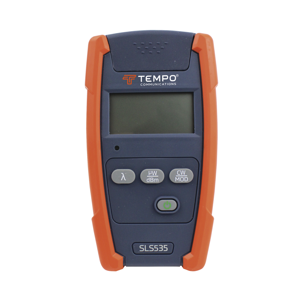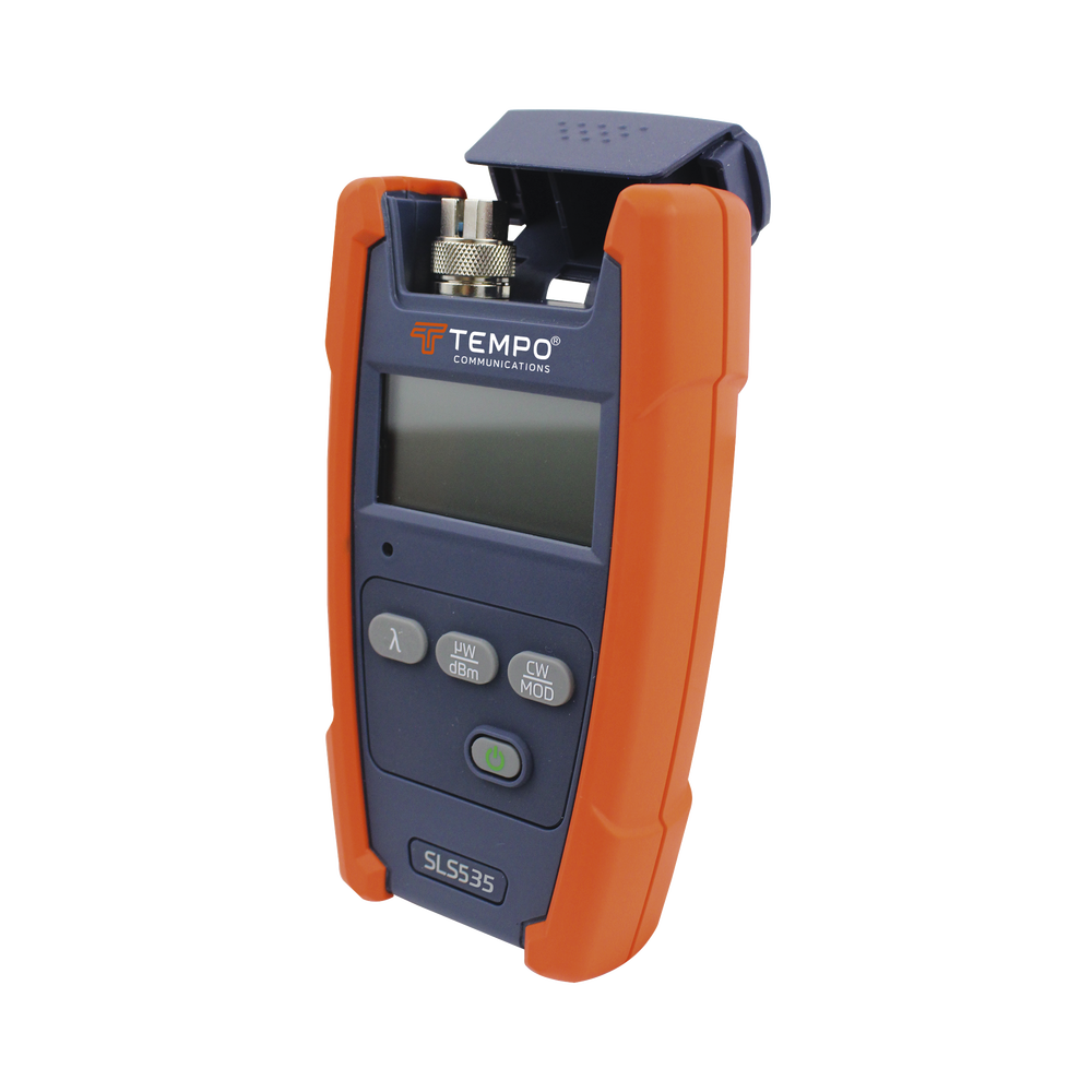 Las fuentes de luz estabilizada para fibra óptica de Tempo Communications (SLS520, SLS525, SLS530, SLS535, SLS536) están disponibles en láseres de longitud de onda doble, triple y LED de longitud de onda doble. Es posible realizar mediciones precisas de la pérdida de inserción cuando se utiliza junto con los medidores de potencia óptica Tempo Communications. Al colocar tonos en la fibra, el medidor de potencia óptica Tempo Communications identificará rápidamente la fibra.