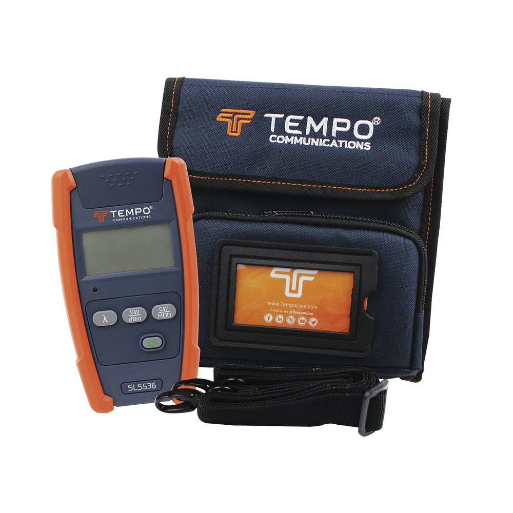Las fuentes de luz estabilizada para fibra óptica de Tempo Communications (SLS520, SLS525, SLS530, SLS535, SLS536) están disponibles en láseres de longitud de onda doble, triple y LED de longitud de onda doble. Es posible realizar mediciones precisas de la pérdida de inserción cuando se utiliza junto con los medidores de potencia óptica Tempo Communications. Al colocar tonos en la fibra, el medidor de potencia óptica Tempo Communications identificará rápidamente la fibra.