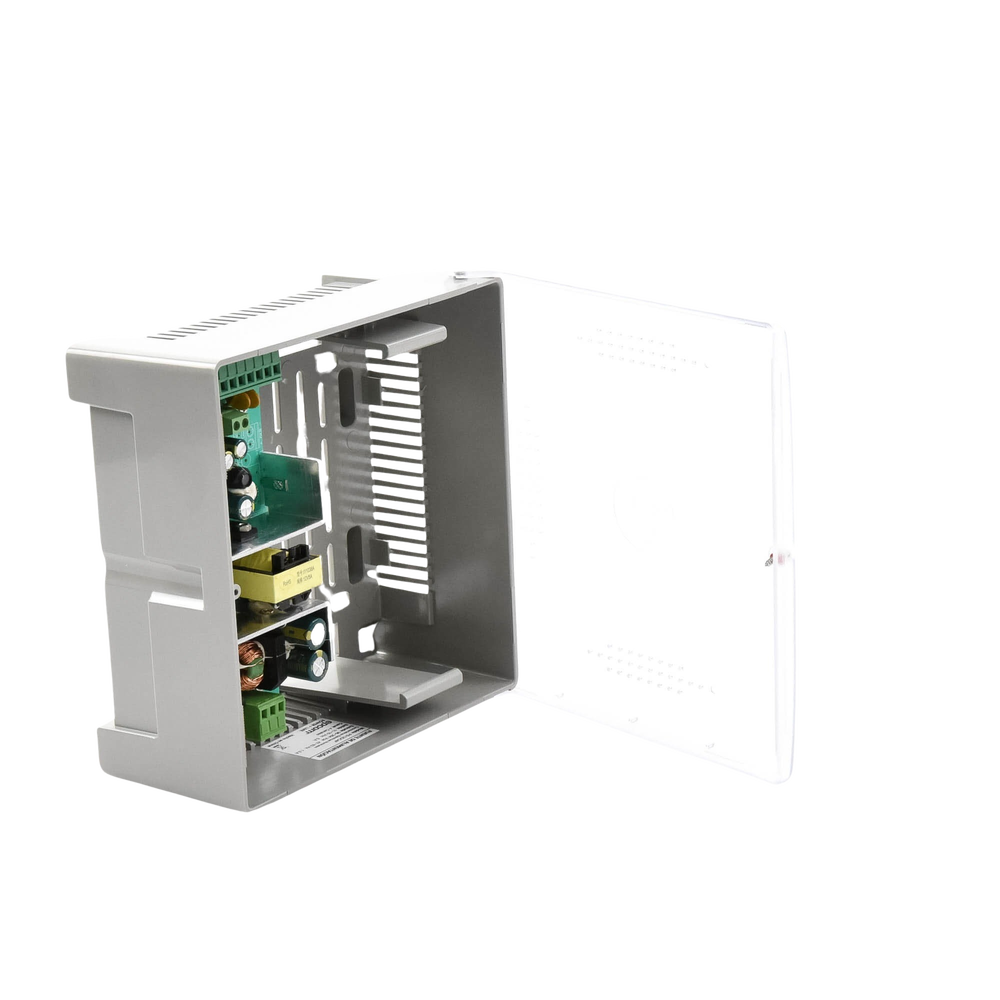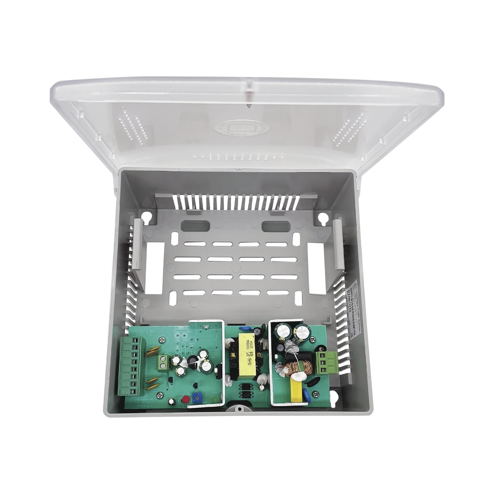 Fuente de Poder con Gabinete de 4 Salidas de 11 – 15 Vcc / 5 Amper / Voltaje de Entrada: 96 – 264 Vca / Soporta Protección contra Sobrecorriente de Salida, Protección contra Cortocircuito / Led Indicador
