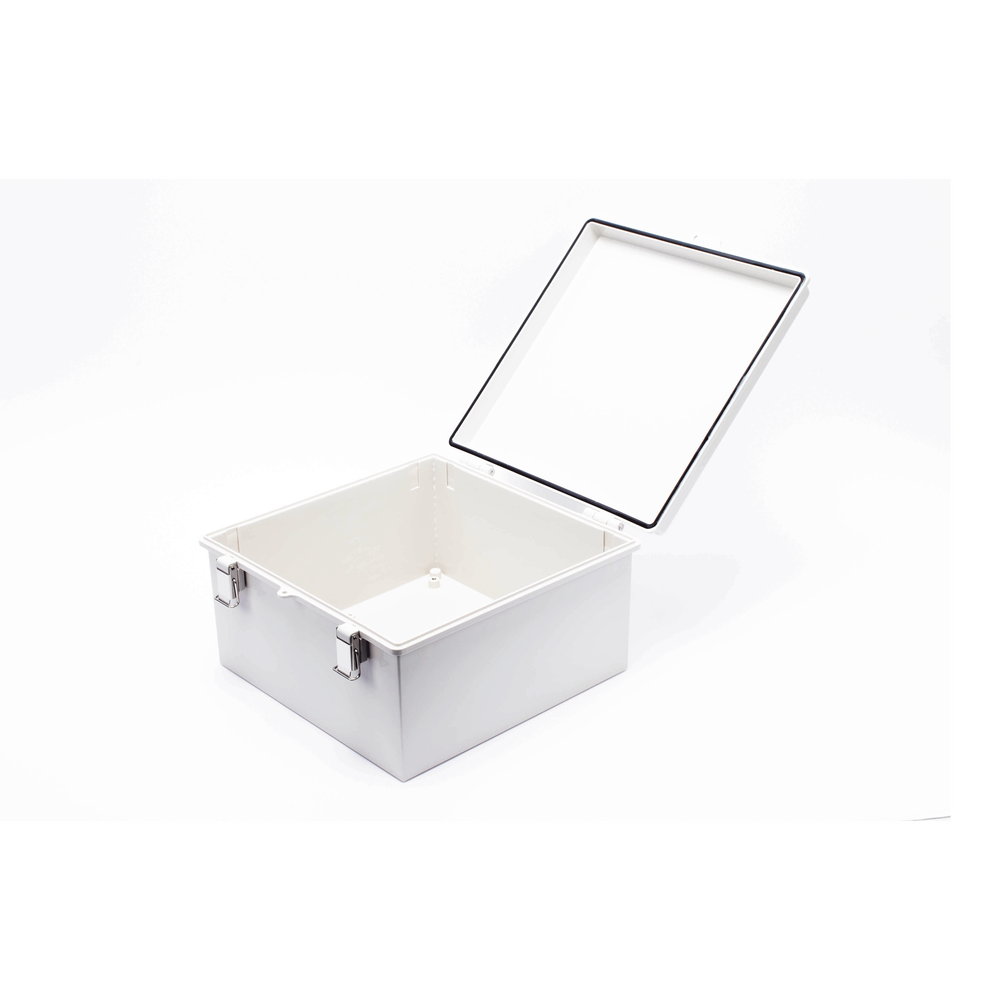 Gabinete de Plástico ABS, Uso en Intemperie ip66 (300 x 300 x 180 mm) Cierre por Broche Inoxidable y Permite Cerrado con Candado y Llave (Perno 5mm) No Incluido