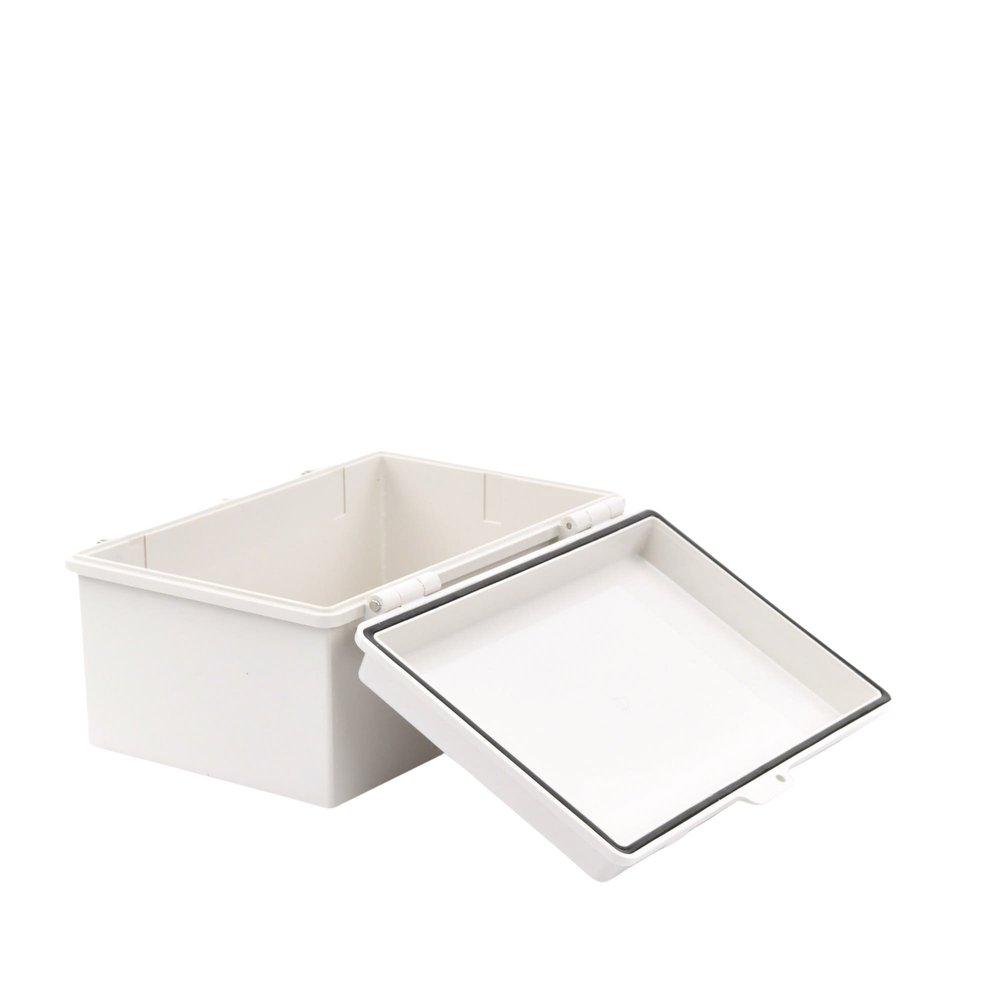 Gabinete de plástico ABS para uso en aplicaciones en exterior como postes, torres de telecomunicación o pared donde no se cuente con protección contra lluvia o polvo excesivo.