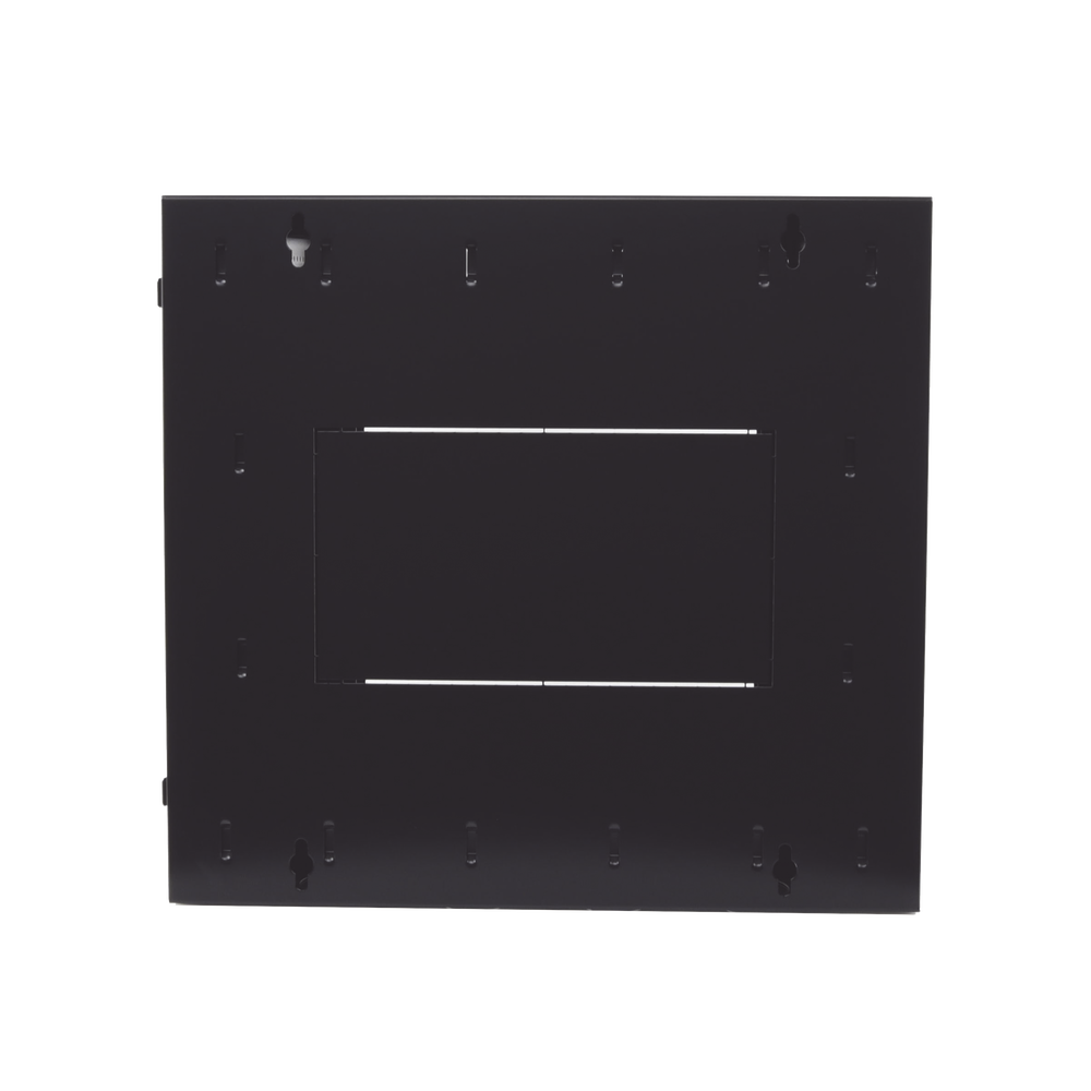 Gabinete de montaje en pared construido en acero, soporta 12 unidades de Rack para equipos de red activos o pasivos. Cuenta con paneles laterales totalmente desmontables y está diseñado para permitir el control de clima adecuado para uso con diversos equipos de red, así como Switches de alimentación remota (PoE) y fuentes de alimentación ininterrumpida (UPS).
