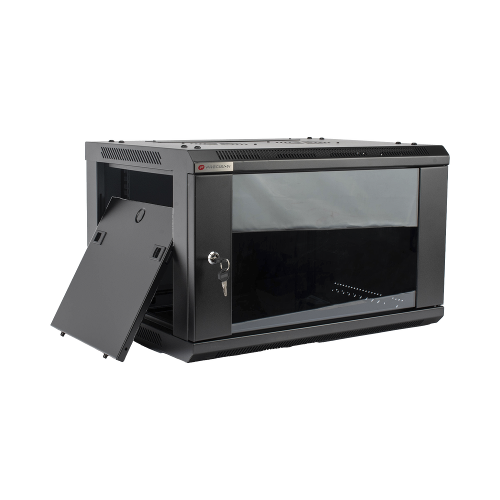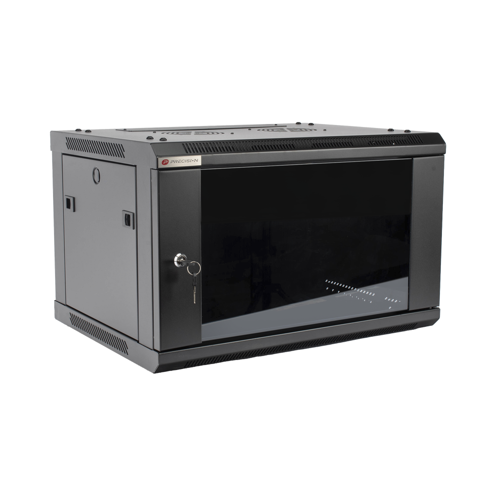 Gabinete PRECISION, Con Puerta de Cristal Templado, de 19in, 6UR, 450mm de Profundidad, Color Negro