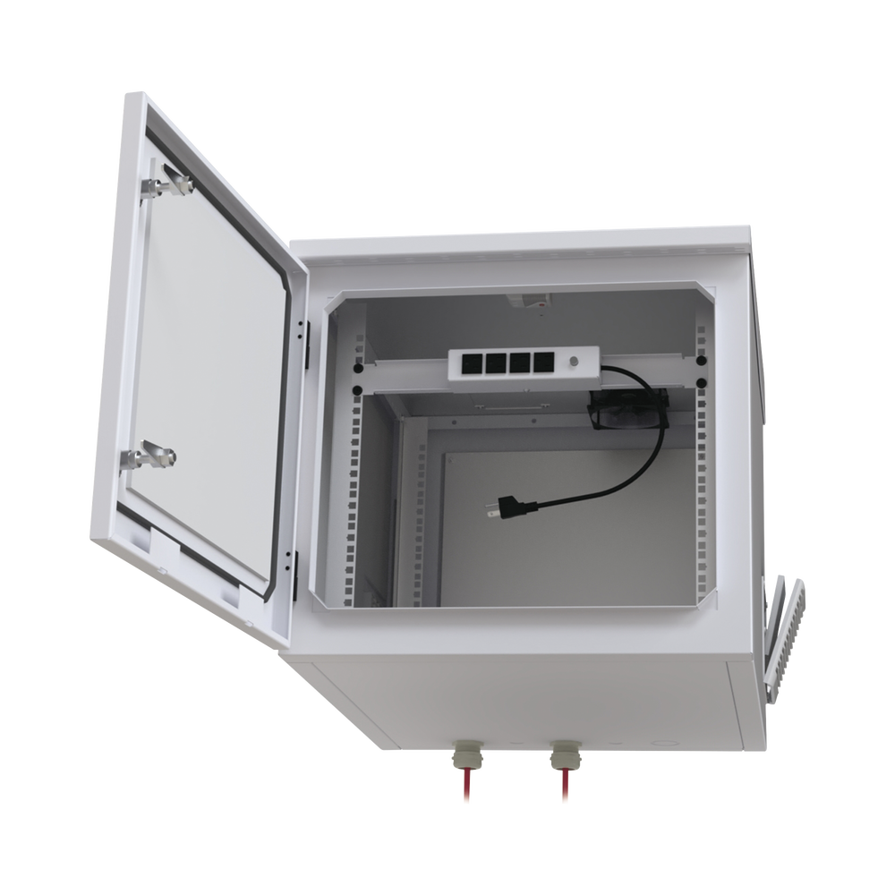 Gabinete PROFUNDO hasta 705 mm de profundidad, de Exterior de 9UR con Ventiladores y Termostato, Se envía el Gabinete Armado, (Montaje a poste o torre se vende por separado).