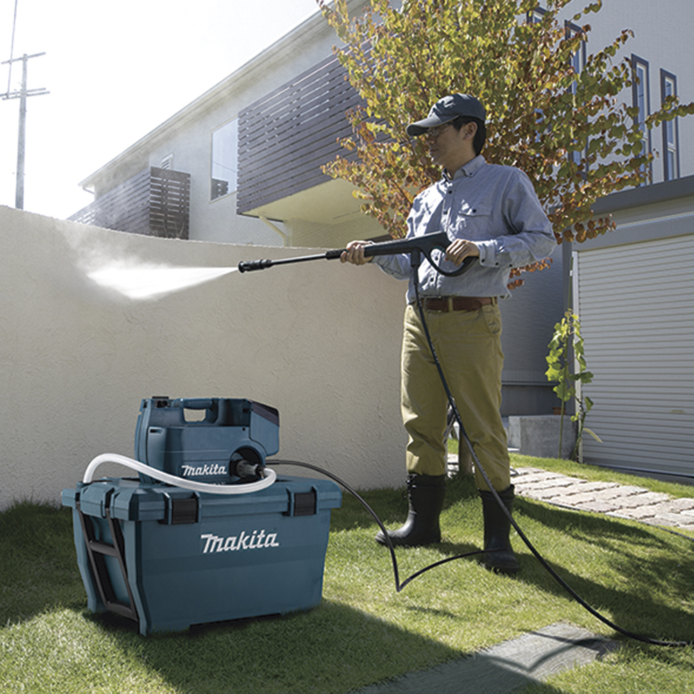- Se ha conseguido una presión máxima 80 bar, tan alta como los modelos eléctricos mediante el uso de un motor BL sin escobillas de alta potencia y una bomba original de Makita.