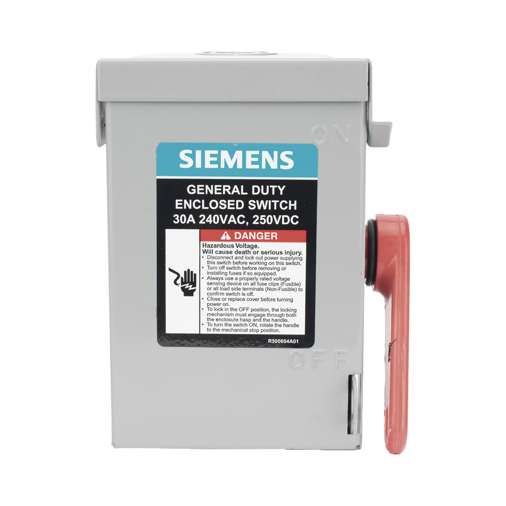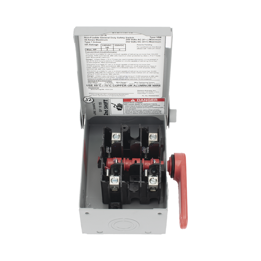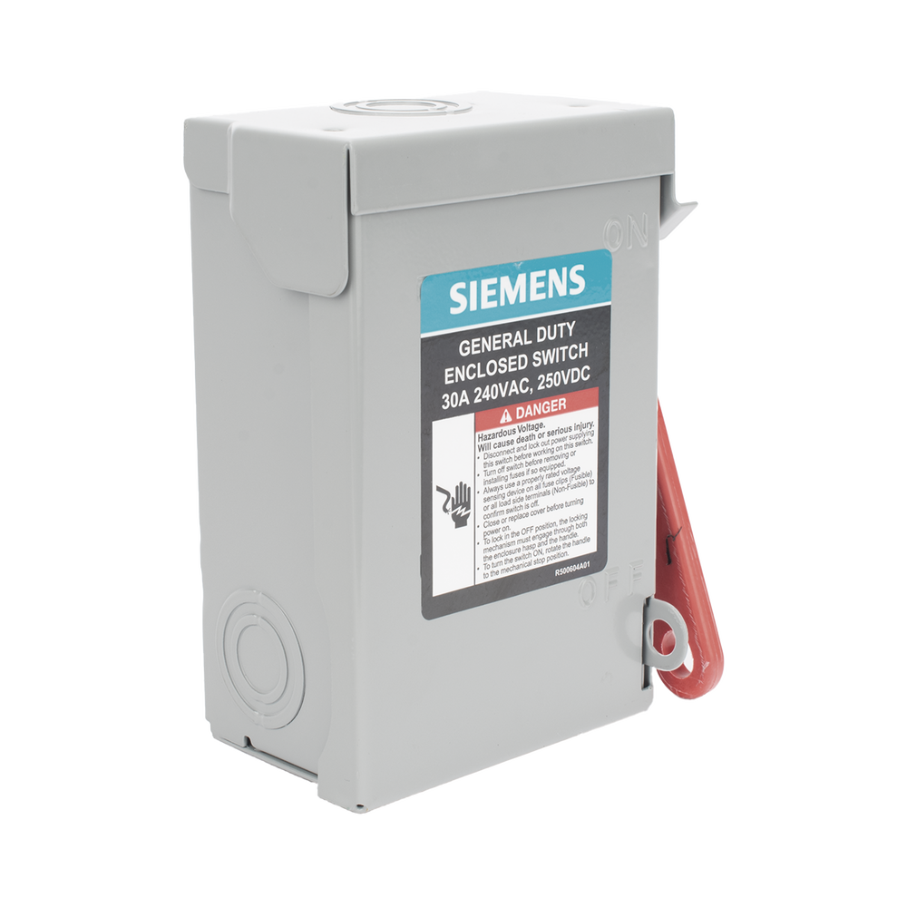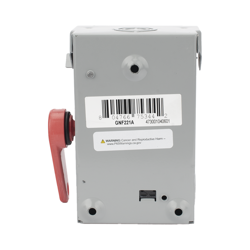 Interruptor de seguridad cerrado de doble ruptura. Interruptor de serie A, 2 polos, 2 hilos sin fusible, uso general.