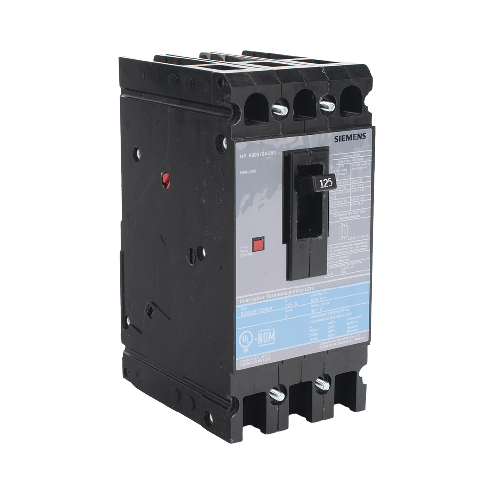 Interruptor Termomagnético ED6 600V 3X125A, Sin zapatas principales.