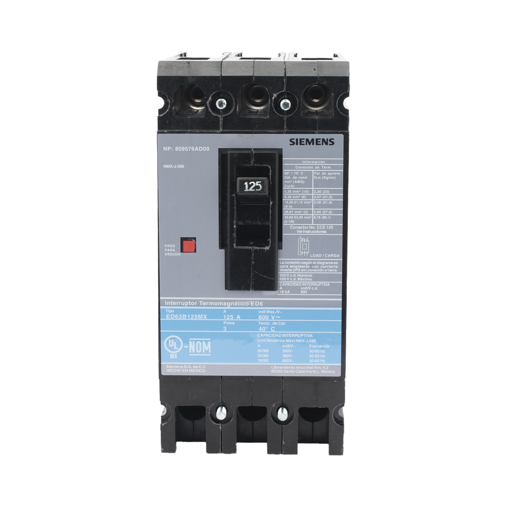 - Corriente nominal: 125 A