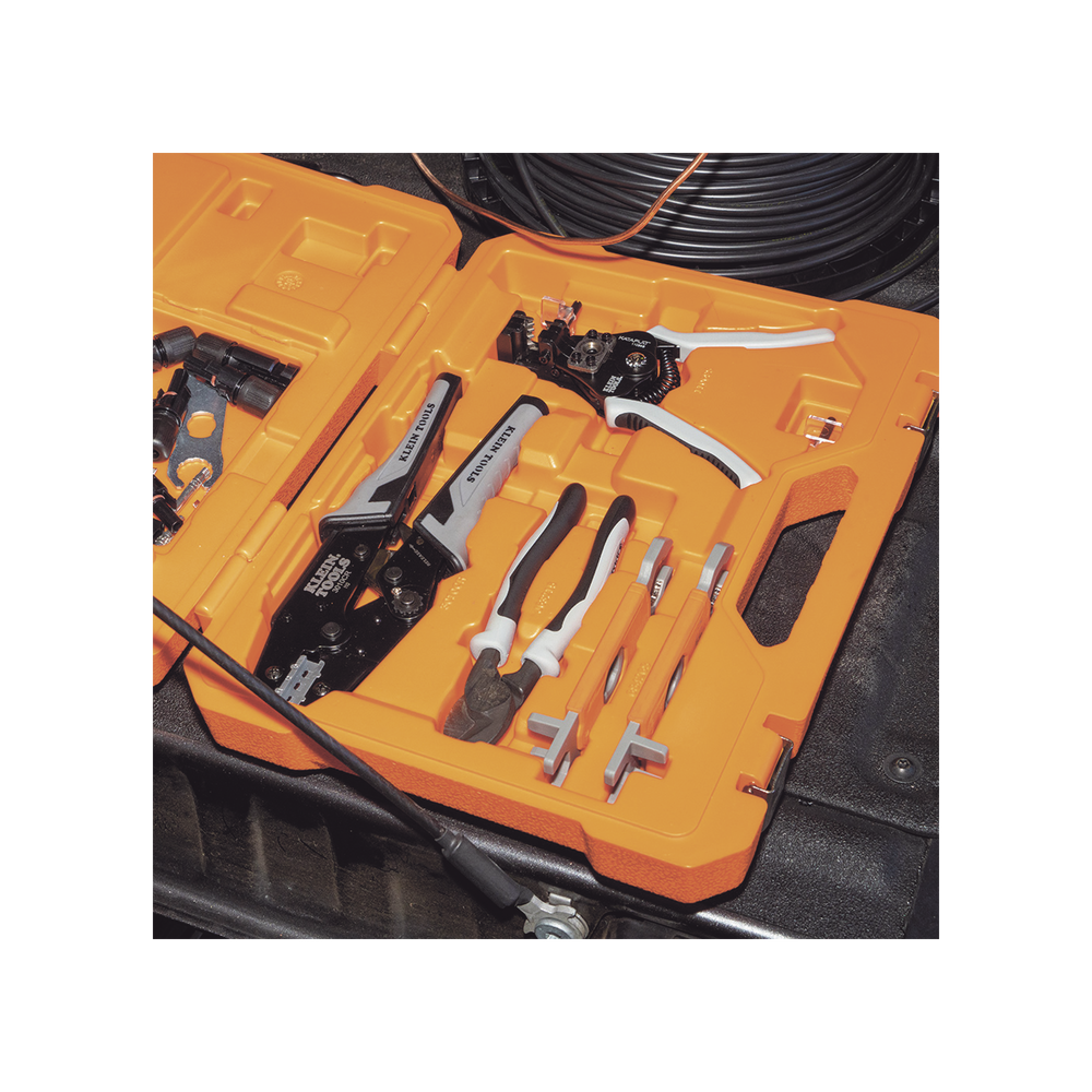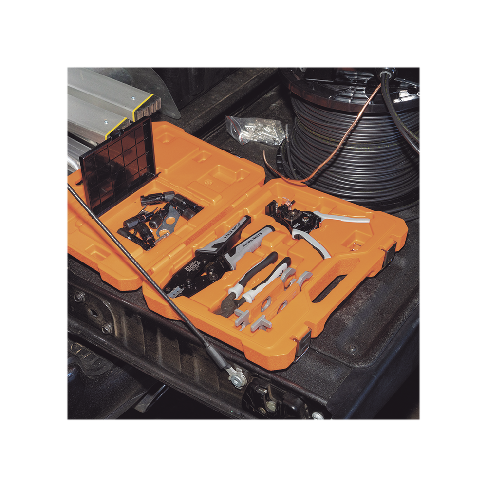 Juego de Herramientas de Conexión Fotovoltaica (Solar), 6 Piezas: Estuche, 2 Llaves Aisladas MC4, Cortador 1/0 AWG Al, Pelacables 6-12 AWG Sólido y 8-14 AWG Trenzado, Ponchadora MC4T 10-14 AWG