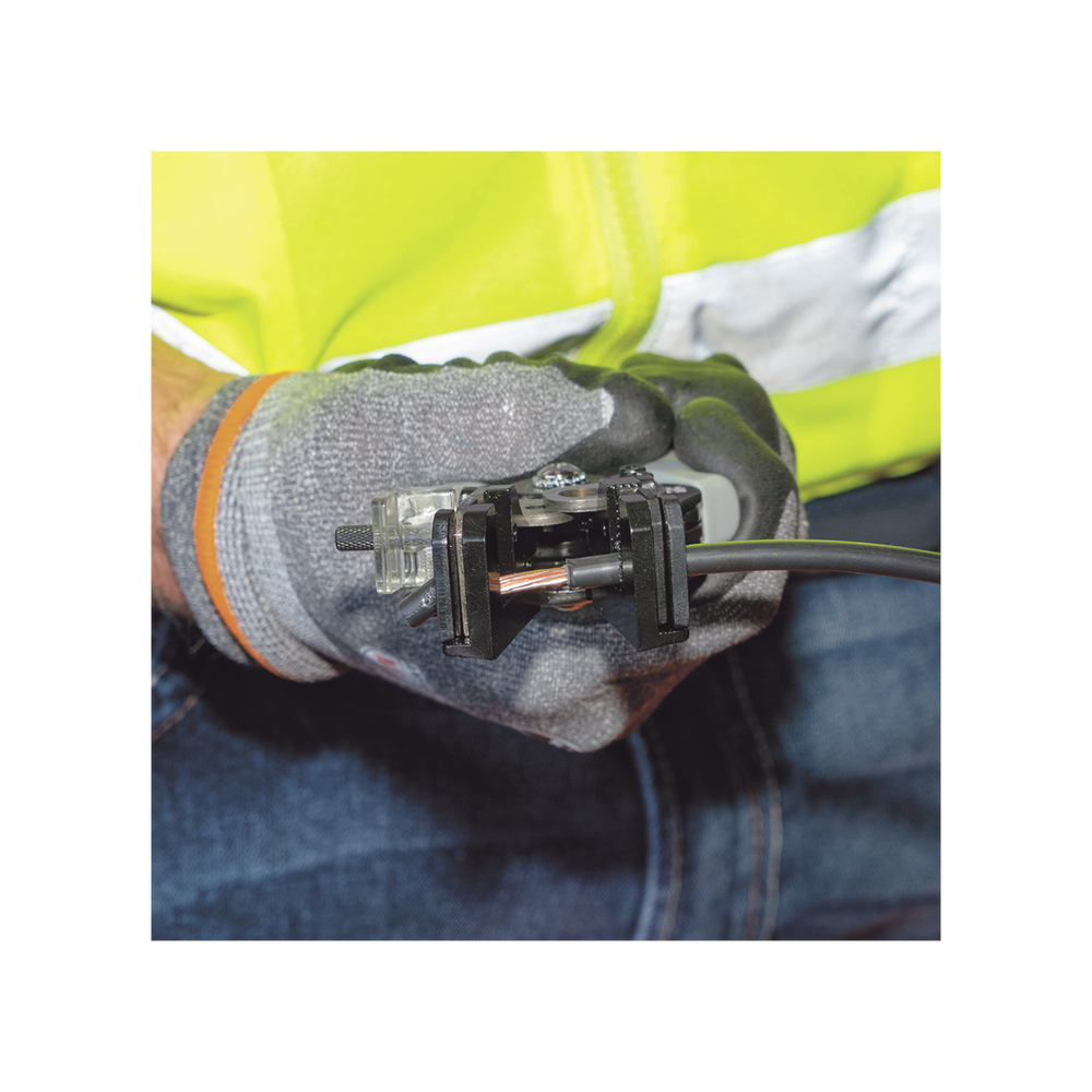- Pelacables automático pela cables fotovoltaicos sólidos de 6 a 12 AWG y trenzados de 8 a 14 AWG.