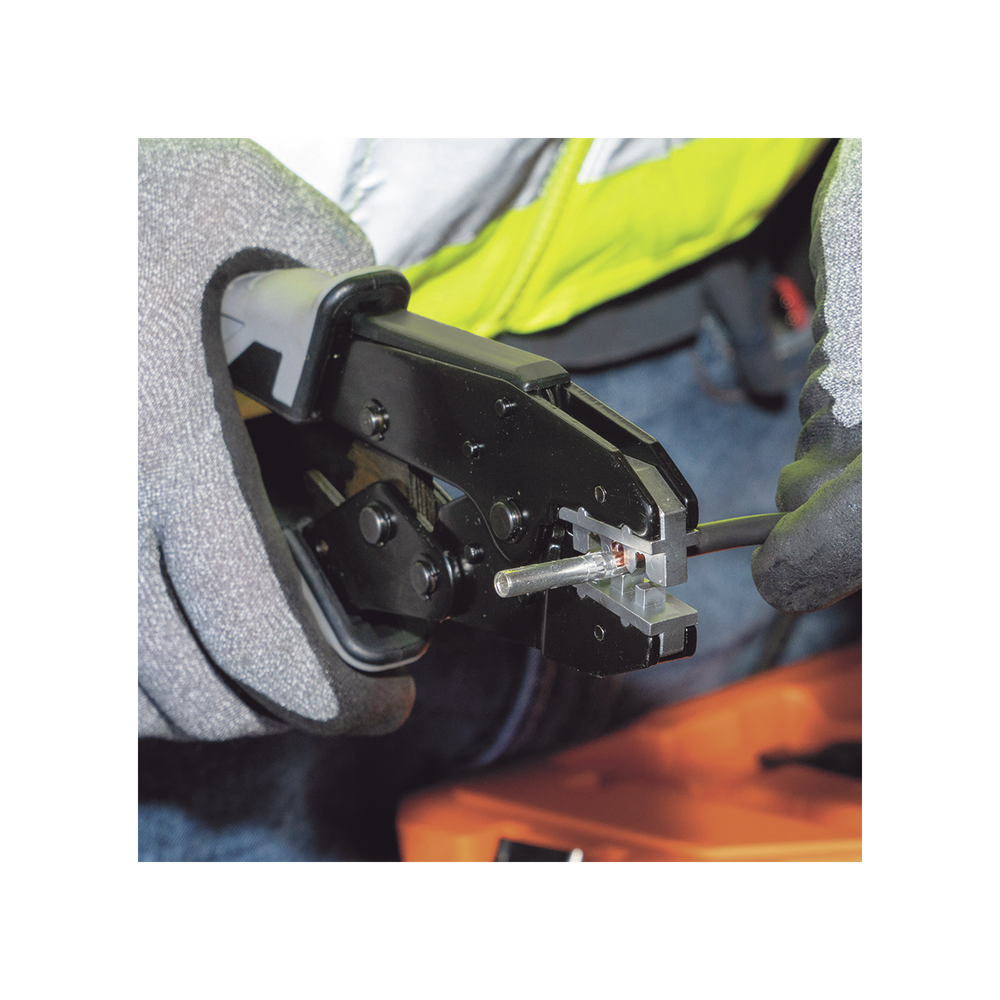 - Ponchadora con trinquete para ponchar pines estilo MC4® de 10 a 14 AWG.