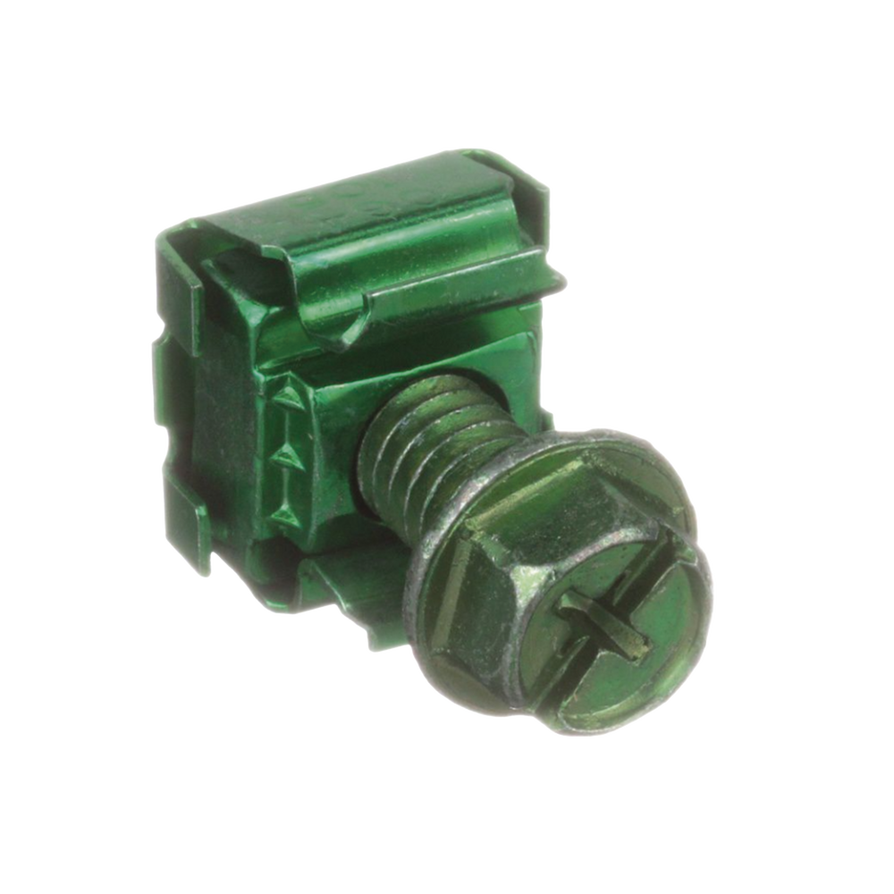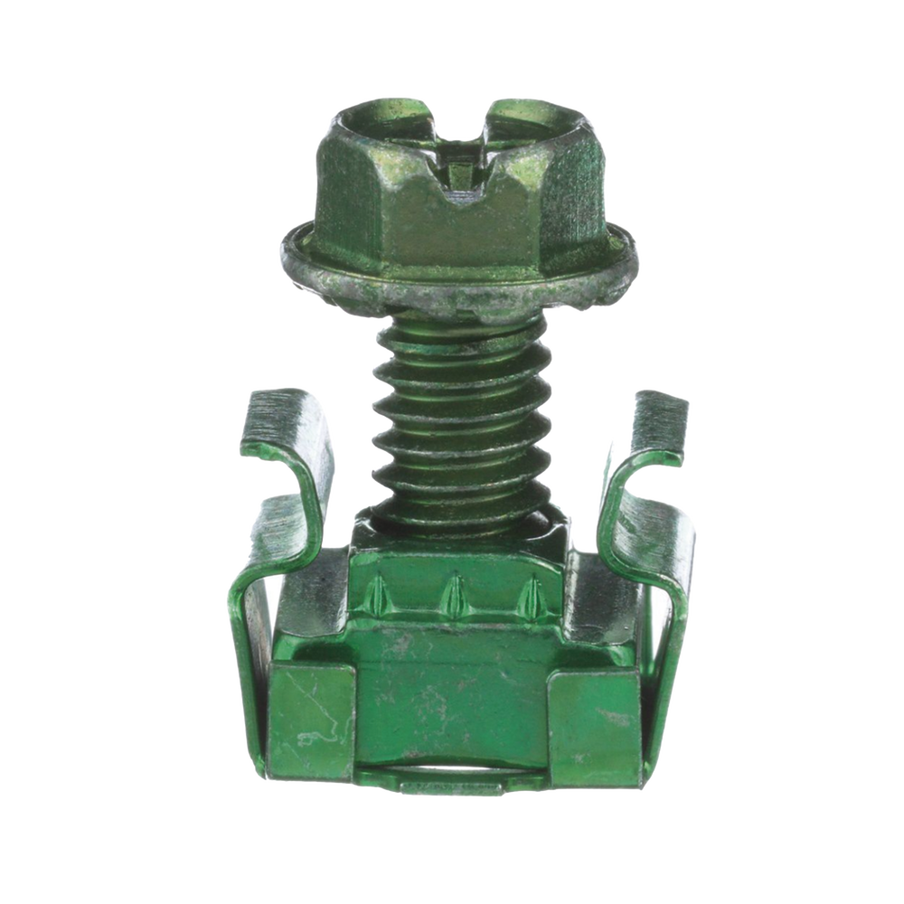 Tuerca enjaulada de unión verde; incluye 4 tuercas enjauladas de unión n.º 12-24 (panel grueso de 0.06 – 0.11) y 4 tornillos de unión n.º 12-24 x 1/2′ con cabeza hexagonal combinada ranurada/Phillips n.º 2 (usar enchufe de 5/16′ u 8mm). Ideal para aplicaciones de paneles de distribución.