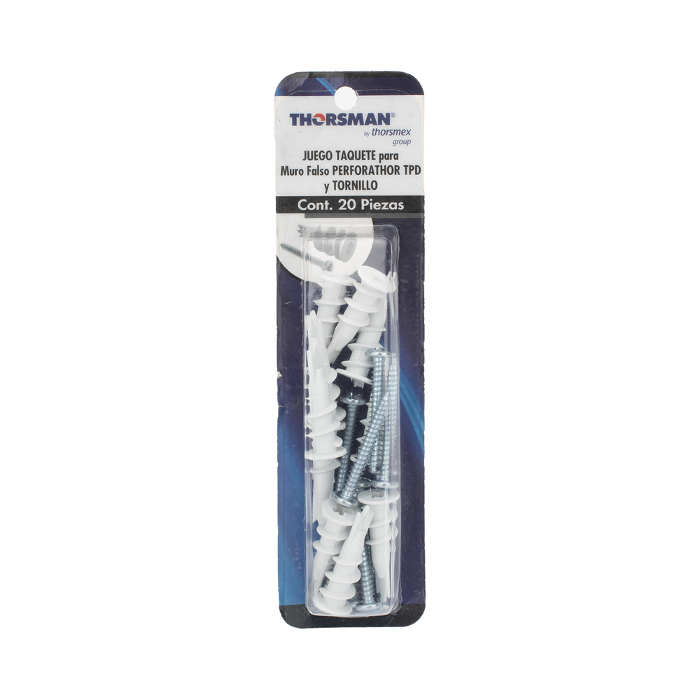 - Taquetes auto-perforable para sujetar y fijar objetos en muros falsos como tablaroca, falso plafón o mampostería