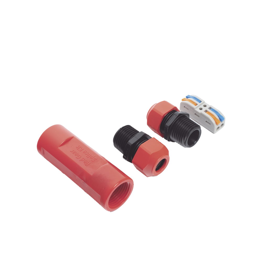 - Incluye conectores de alivio de tensión, barril y conectores de empalme rápido