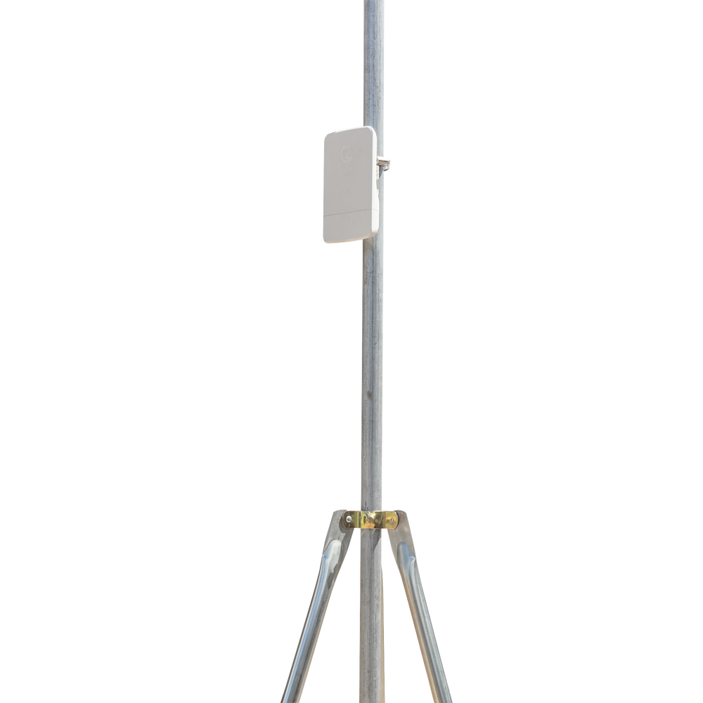 Incluye nuestro montaje de tripie para exterior modelo LP-TP-2 con el mástil de 3 metros SLM-3 Esto para hacer una instalación mucho más rapida y limpia en los lugares donde no hay donde instalar.