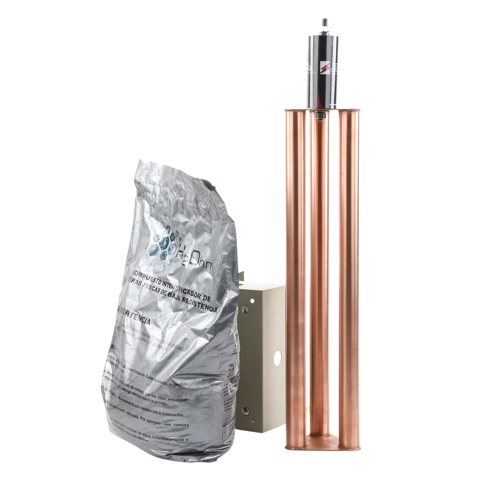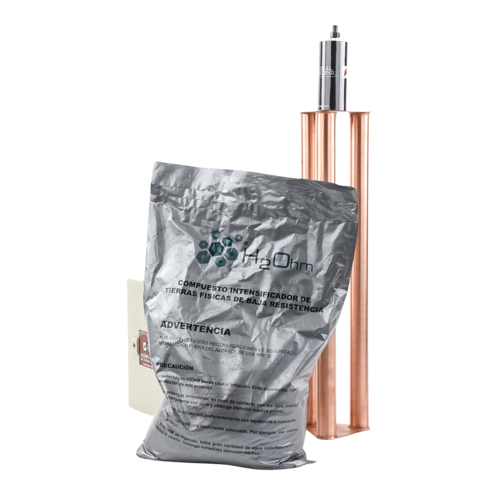 Kit de puesta a tierra de 100 Amperes con Electrodo, Filtro, Acoplador y Compuesto H2Ohm.