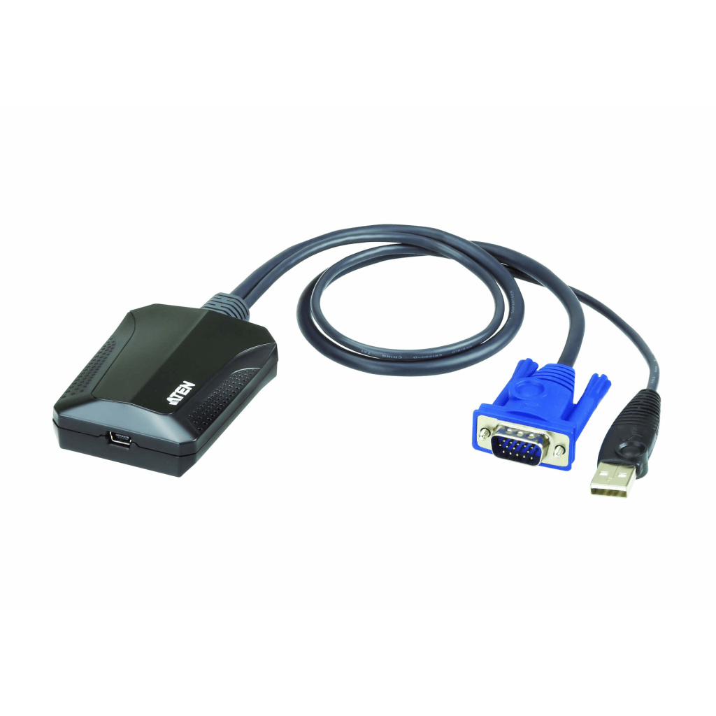 El CV211 de ATEN es un adaptador para consola KVM USB diseñado para administradores de TI móvil frustrados. Es el sustituto perfecto para el carrito de emergencia, ya que convierte el ordenador portátil en una consola KVM que combina la funcionalidad de un conmutador, una caja de captura, un DVD-ROM externo, un teclado, un ratón y un monitor en una unidad compacta y práctica. Podrá diagnosticar y resolver de forma rápida y profesional servidores, cajeros automáticos o sistemas de punto de venta.