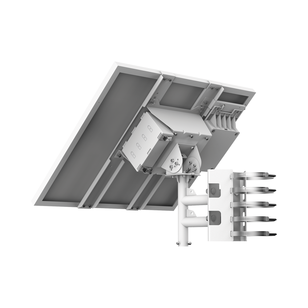 • Incluye: panel solar, batería de respaldo, montaje de poste, brazo para cámara y panel