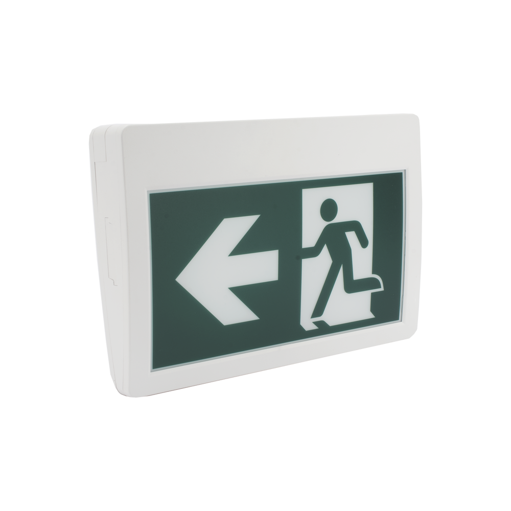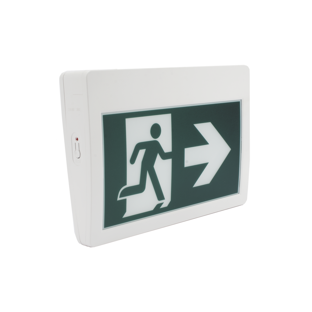 Letrero LED de Señalización de salida “Hombre Corriendo”/ Alto brillo / Uso en pared, lateral o techo / Batería de Respaldo Incluida con hasta 120 minutos de duracion