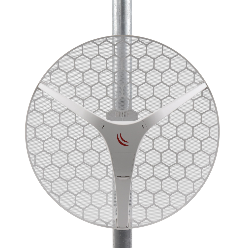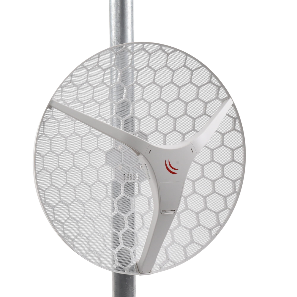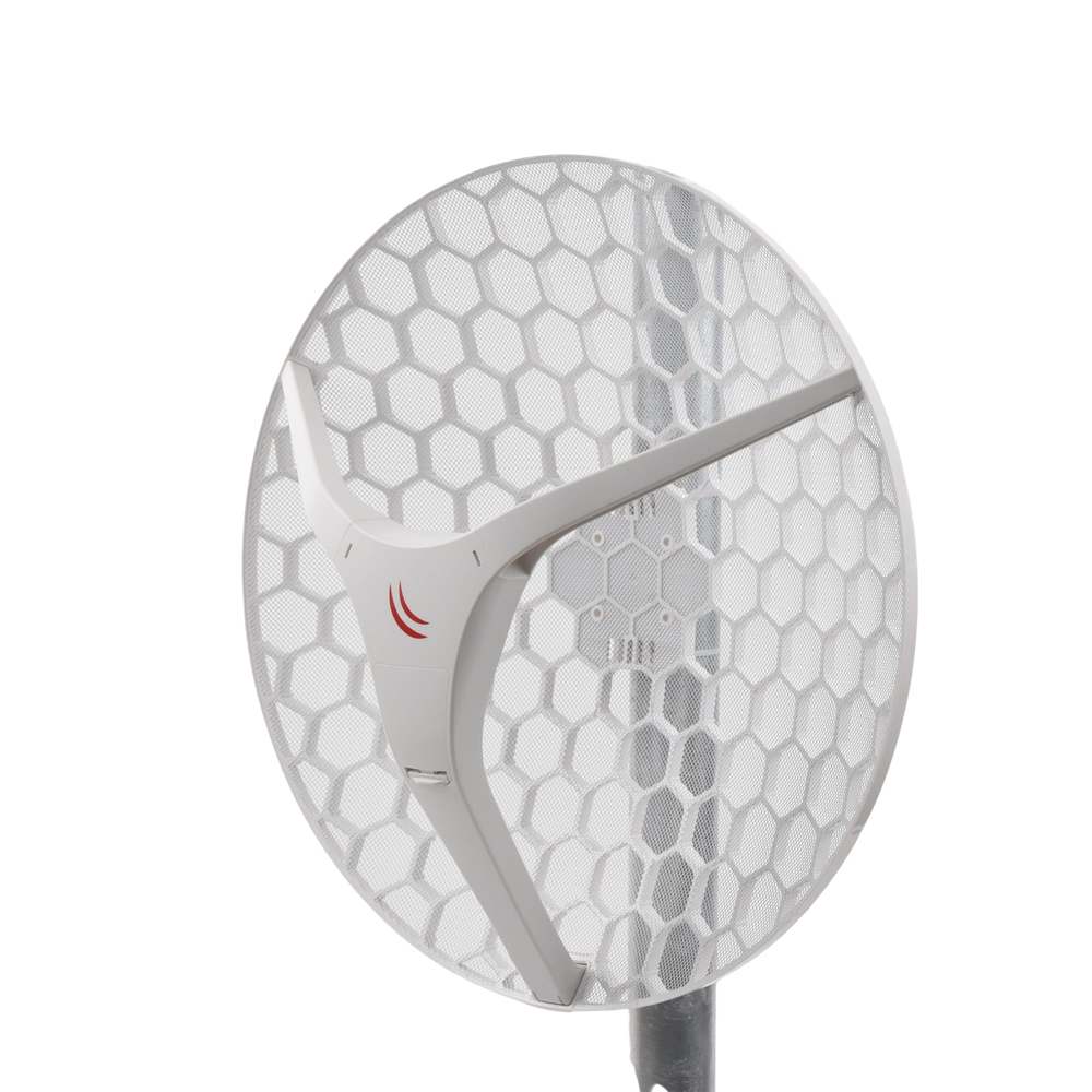 El LHG XL HP5 es un dispositivo inalámbrico 802.11 a/n de 5 GHz con una antena de red de polarización dual integrada de 27 dBi y alta potencia de salida TX, diseñado para alcanzar hasta 40 km en configuraciones punto a punto a toda velocidad.