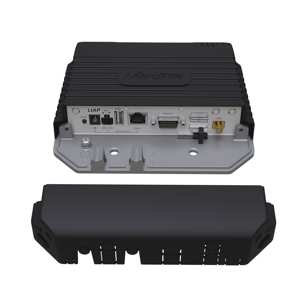 (LtAP) – A heavy-duty 2.4GHz access point with two miniPCI slots, three SIM slots and GNSS support (GPS, GLONASS, BeiDou, Galileo)