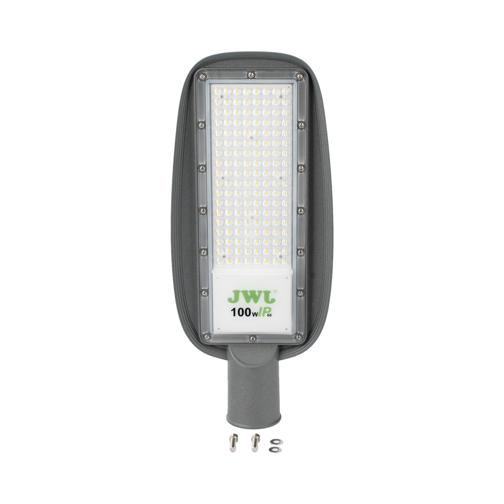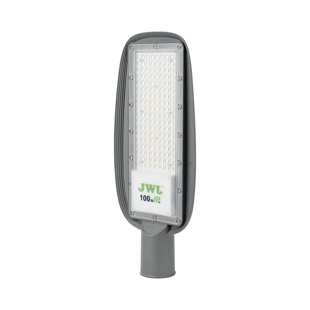 Luminaria LED de 100 W / 100 – 265 V CA~50/60 Hz / Fotocelda / Color Blanco/ Dimensiones 200 x 465 x 78 mm / Ángulo de Luz 135°.