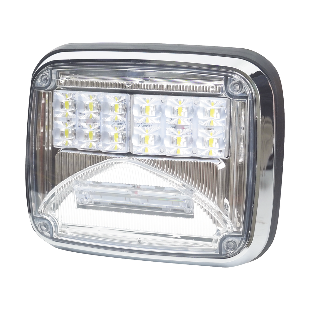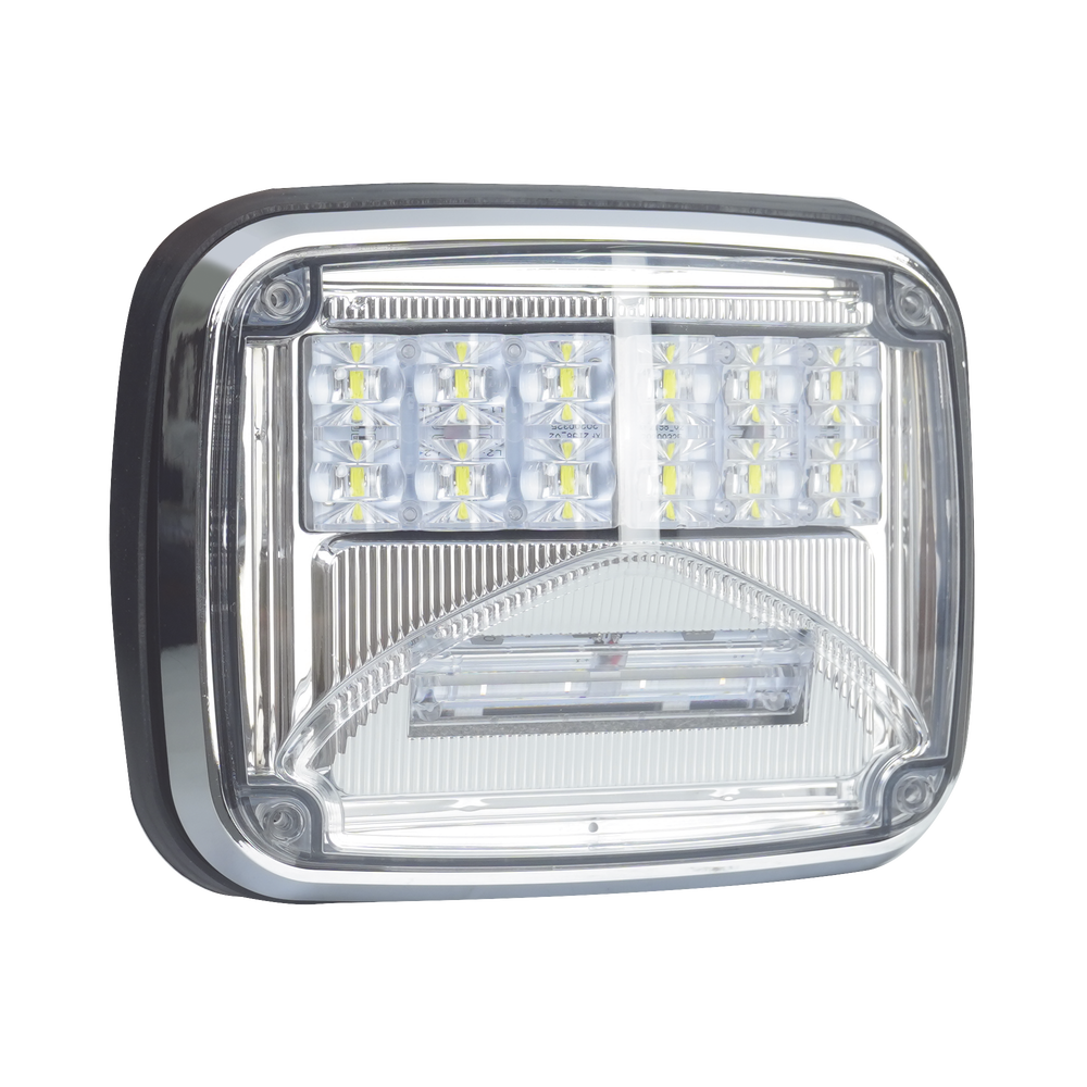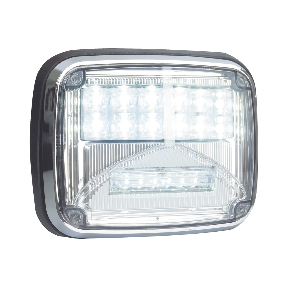 Luz de advertencia Serie XLTE1755 con combinación de luz de advertencia y luz blanca de trabajo, diseñada para ofrecer gran desempeño y larga vida útil en aplicaciones críticas.