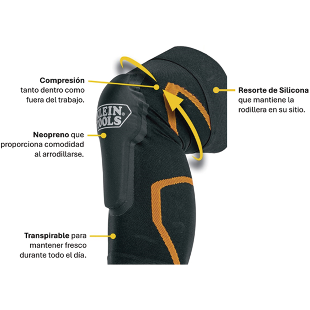 Las mangas de compresión para rodilleras de Klein Tools fueron diseñadas para los trabajadores que necesitan el beneficio de la compresión dentro o fuera del lugar de trabajo. La almohadilla de espuma de neopreno de la rodilla proporciona comodidad adicional al arrodillarse con las rodillas adoloridas y cansadas por la jornada laboral. El diseño compacto y de bajo perfil se adapta fácilmente bajo la ropa, mientras que el agarre de silicona antideslizante en el puño superior mantiene la manga en su lugar durante el uso. Con un trama abierta y soporte, el material de tejido duradero brinda comodidad que dura todo el día. Lavable a máquina y se vende por pares.