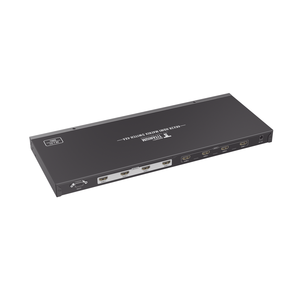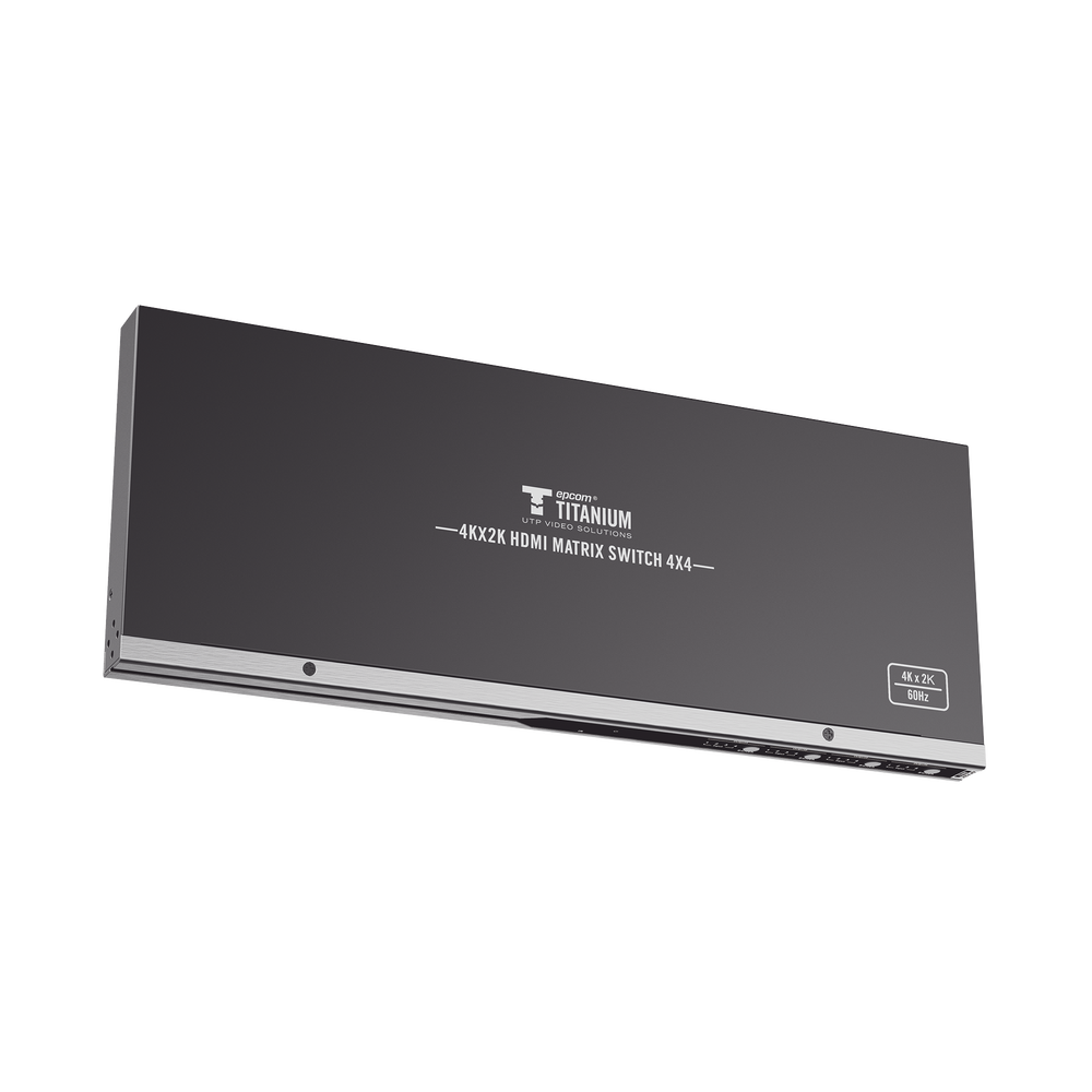La matriz de conmutación HDMI TT-414-V2.0 de epcom TITANIUM proporciona un enrutamiento de alto rendimiento de señales HDMI a múltiples dispositivos de visualización 4 entradas HDMI y 4 Salidas HDMI (4 X 4), se adaptan a la conexión simultánea hasta 4 fuentes de video de alta definición, como NVR, DVR, PC, así como cualquier equipo fuente que cuente con HDMI. Las 4 salidas HDMI envían señales de audio / video de alta definición a 4 pantallas HDTV. Cumplen las especificaciones HDMI, incluyendo tasas de datos de hasta 18Gbps, resolución 4K a 60 Hz y formatos de audio DTS-HD/Dolby-true HD/LPCM7.1/DTS/Dolby-AC3/DSD sin pérdida. Las matrices de conmutación HDMI de epcom Titanium están diseñadas con tecnologías inteligentes que ayudan a los integradores a garantizar un funcionamiento fiable del sistema y la compatibilidad entre dispositivos digitales.