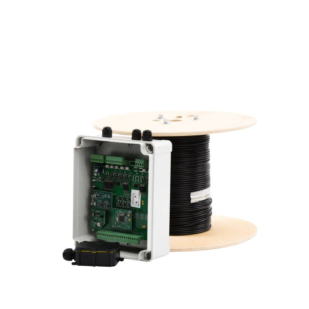 - Cada kit incluye un procesador en una carcasa resistente a la intemperie, un cable del sensor de la longitud elegida y una unidad de terminación de fin de línea.