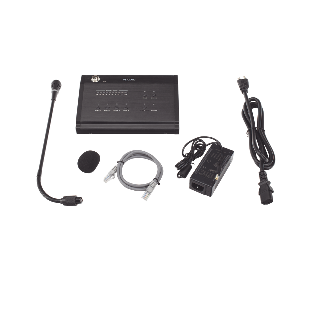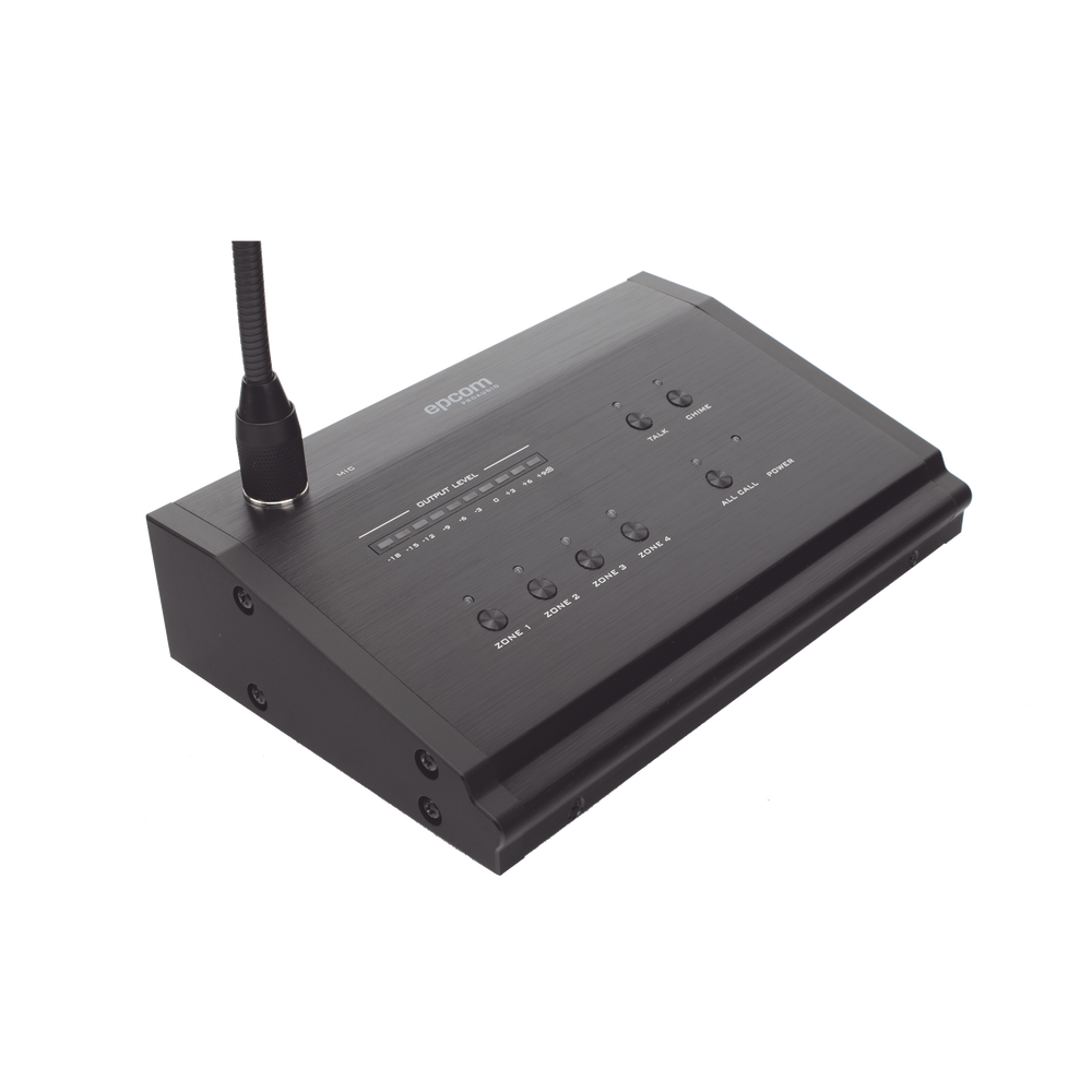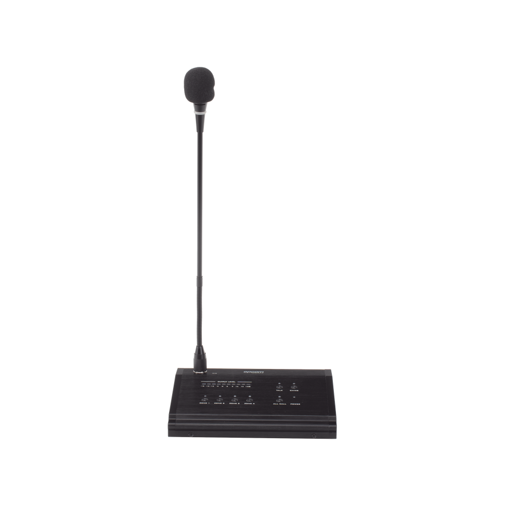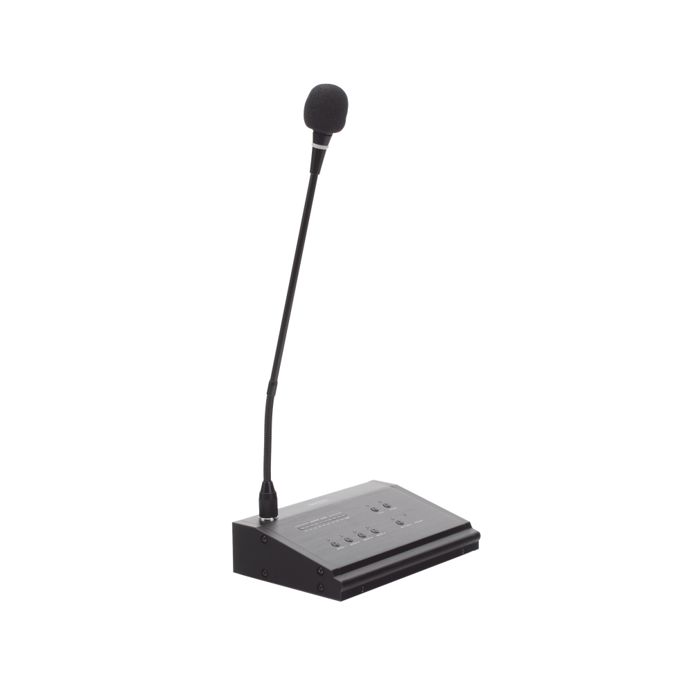 Micrófono de voceo con capacidad de 4 zonas.
