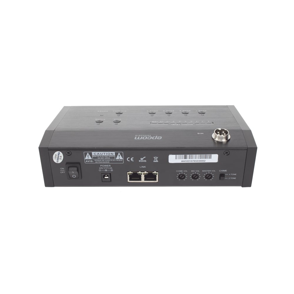 - Capacidad para voceo en grupo de zonas, por zona o en todas las zonas.