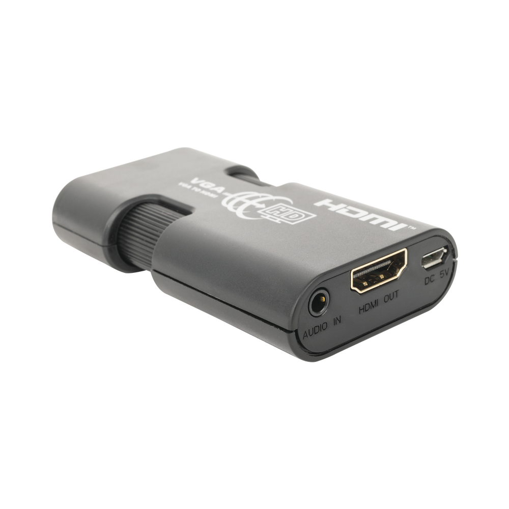 El convertidor de VGA a HDMI TT350MINI convierte VGA y audio a HDMI, lo que permite la conexión de PC a HDTV de 1080p. Admite múltiples resoluciones de hasta 1920 x 1080 a 60 Hz.