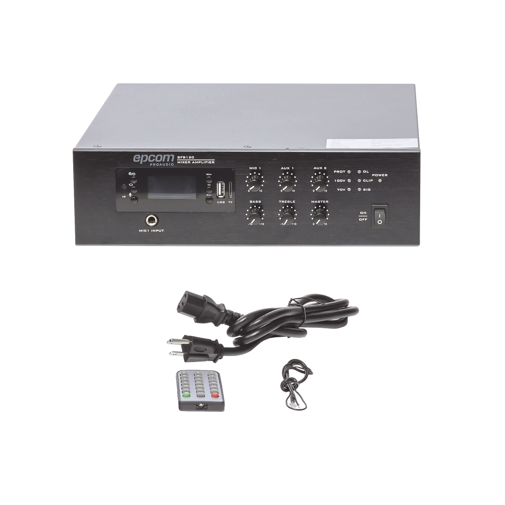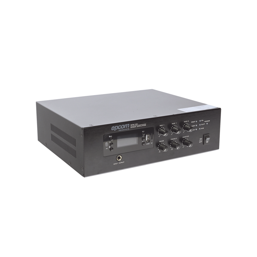 Mini Amplificador de Audio Mezclador | 120W RMS | Sistema 70/100V | MP3 | Tuner | Bluetooth | Musica ambiental y Voceo