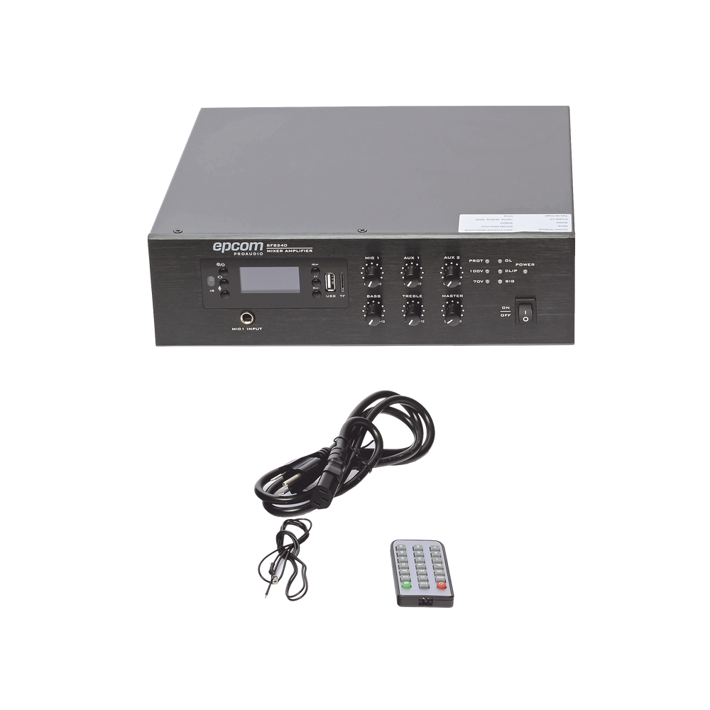Mini Amplificador de Audio Mezclador | 240W RMS | Sistema 70/100V | MP3 | Tuner | Bluetooth | Musica ambiental y Voceo