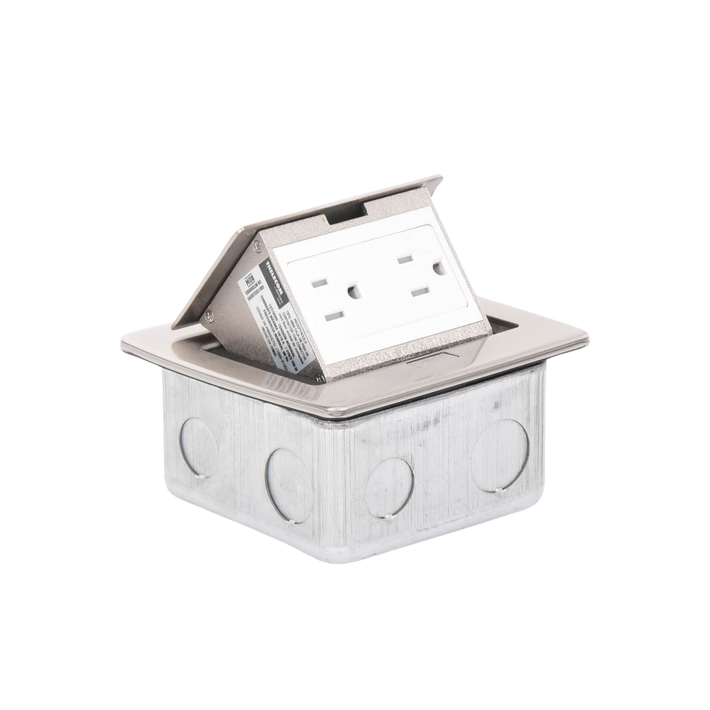 Mini Caja de Piso Rectangular en Acero Inoxidable con 2 Contactos El?ctricos (11000-21201)