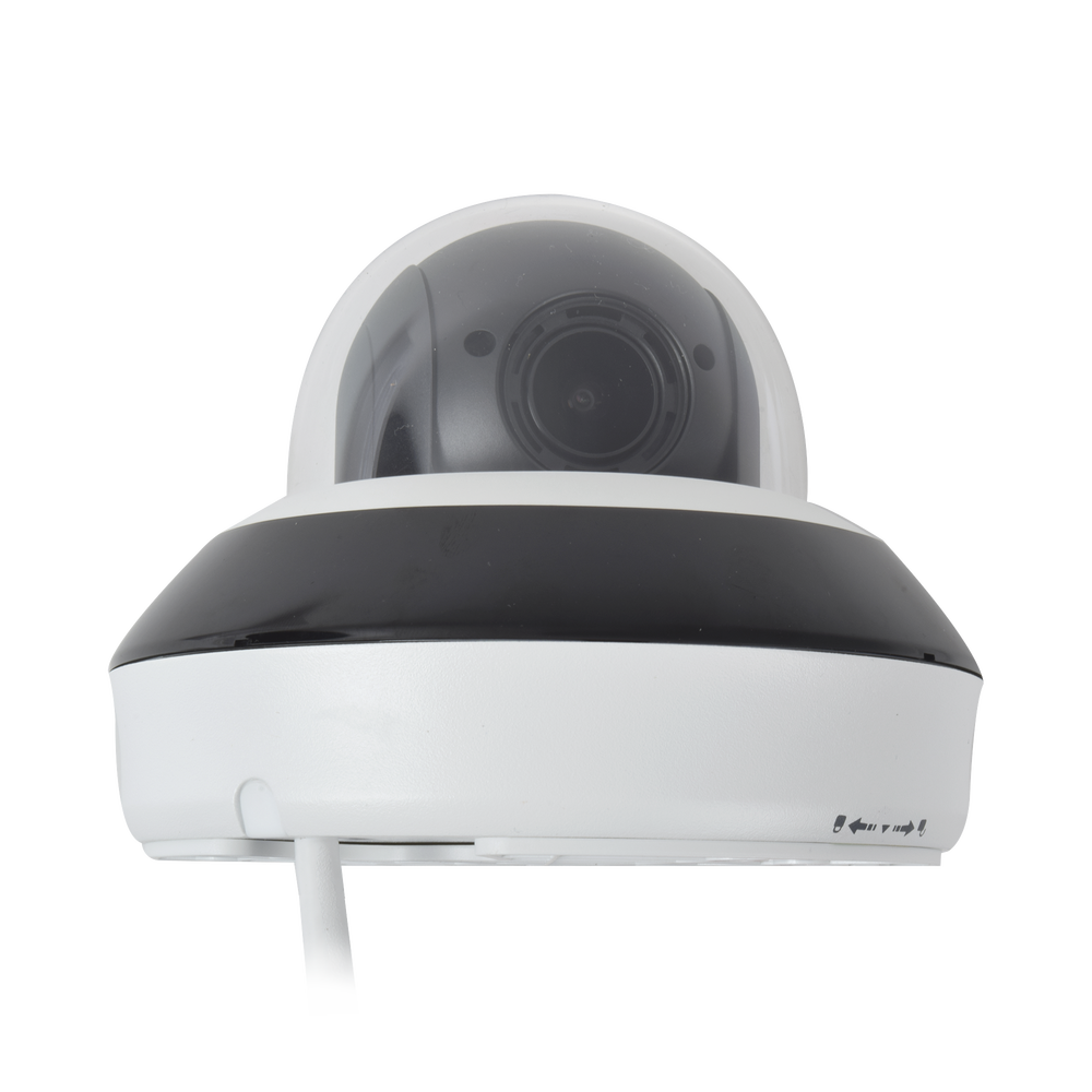 Mini Domo PTZ IP 4 Megapixel / 4X Zoom / H.265+ / 20 mts IR EXIR / WDR 120dB / PoE / IK10 / Exterior IP66 / Ultra Baja Iluminación / Micrófono Integrado / PoE