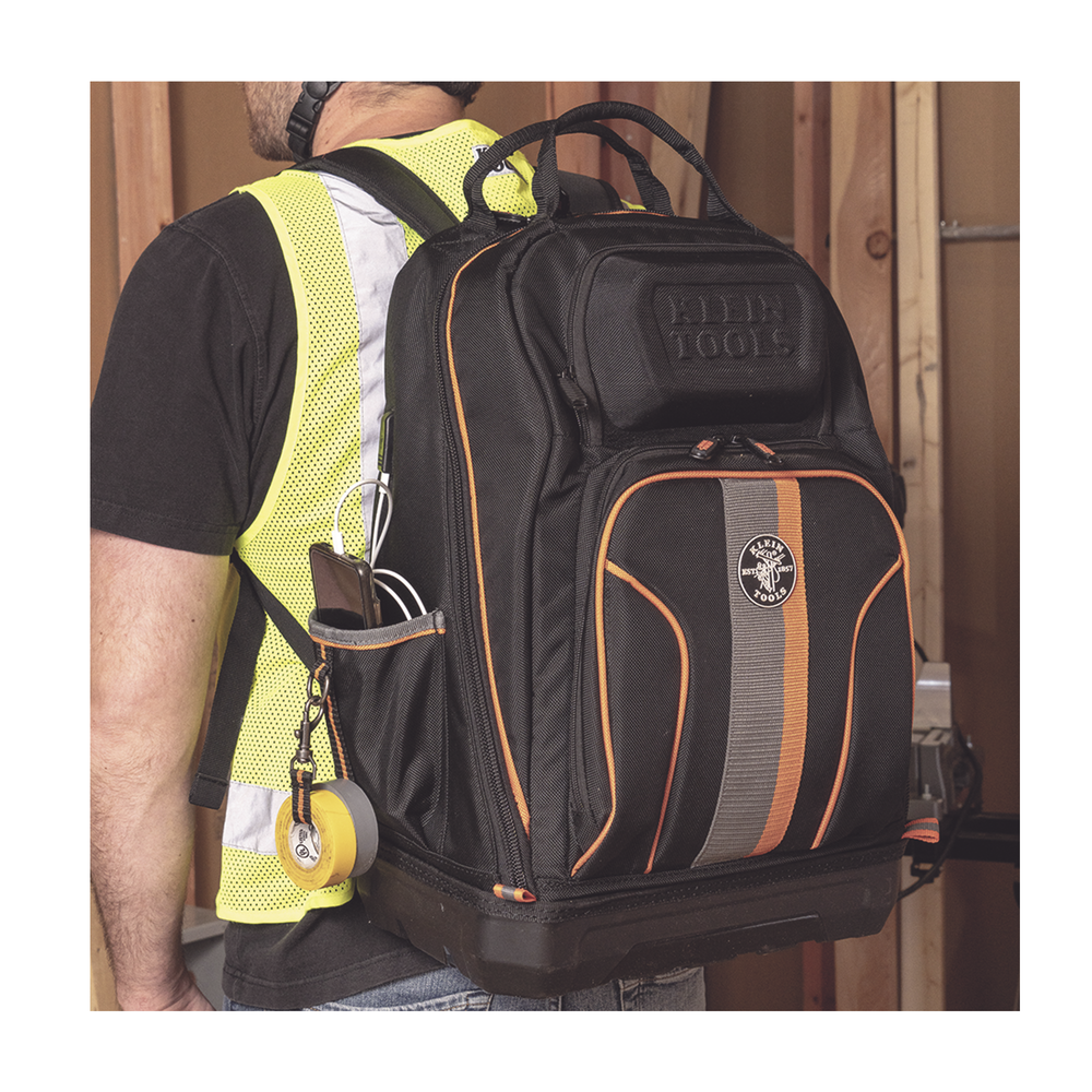 - Incluye un soporte para luz frontal interna para usarlo con una luz frontal de Klein Tools (se vende por separado, Cat. n.º 56062, 56049) para iluminar el interior del bolso para herramientas o el entorno exterior