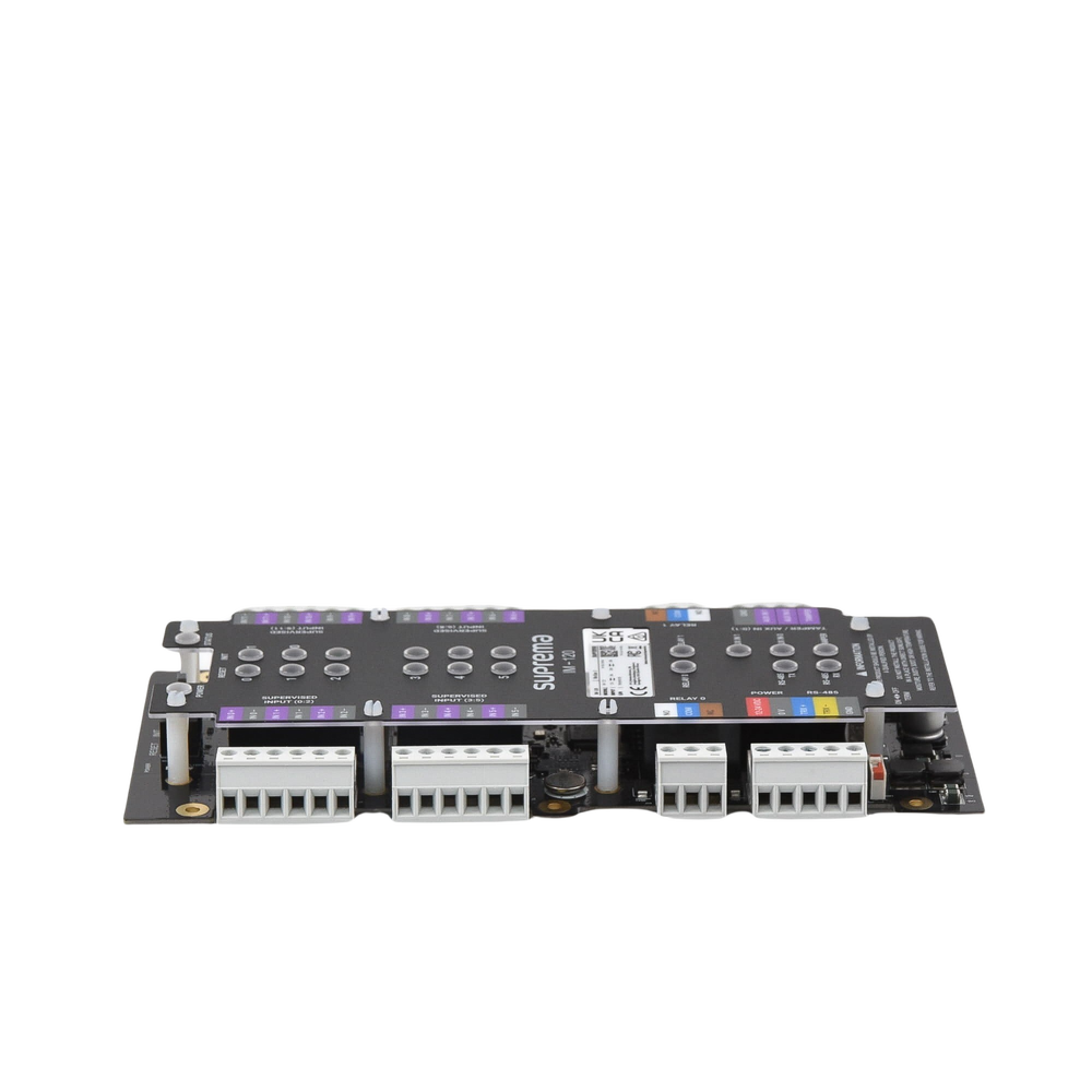 El módulo de entradas es un módulo de extensión de múltiples entradas el cual puede controlar hasta 12 entradas supervisadas, 1 tamper switch y 2 relevadores. Un total de 31 unidades pueden ser conectadas a un equipo maestro vía RS485 en conexión en cascada. Esto permitiendo usar las entradas para enlazarlas a sensores o contactos de puertas, etc., y también como la brindar una sencilla interface de contacto seco a otros sistemas.