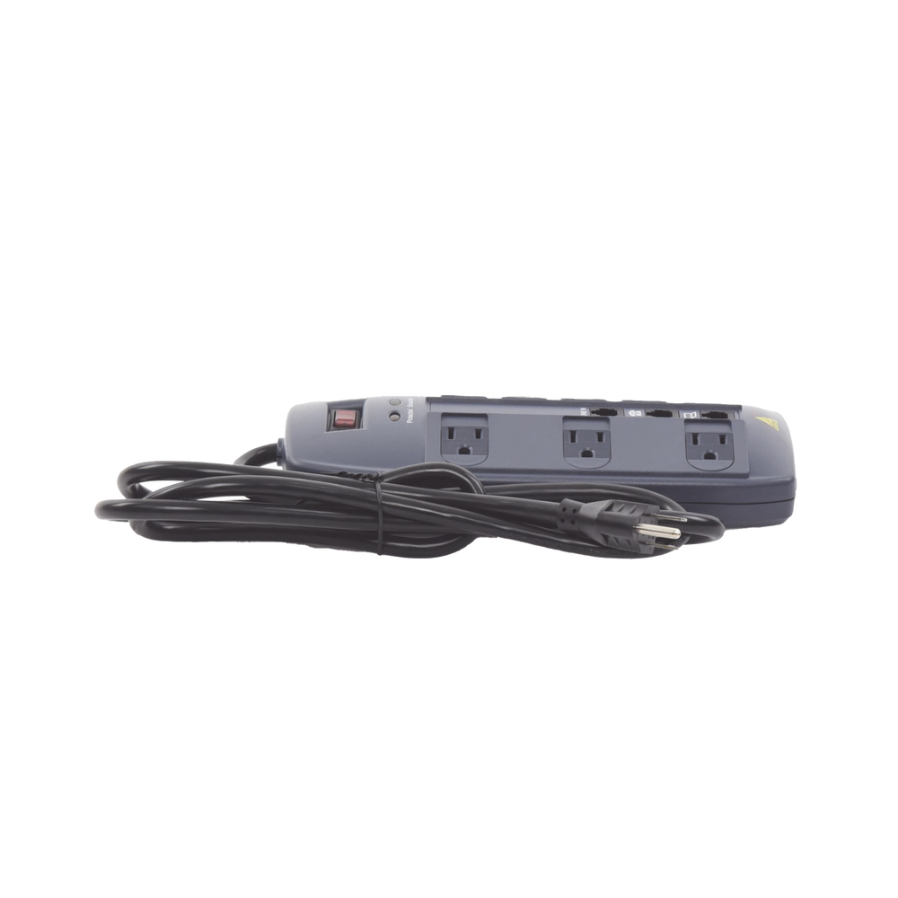 El dispositivo de protección contra sobretensiones (SPD) de ocho salidas DTK-8FF de DITEK protege la alimentación de CA y las líneas de telecomunicaciones/módem/fax.