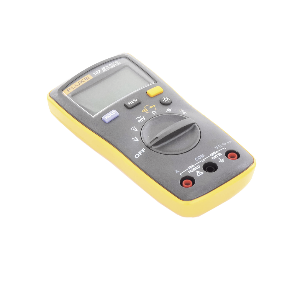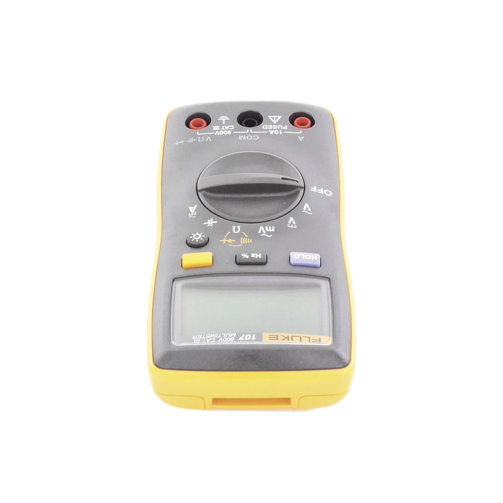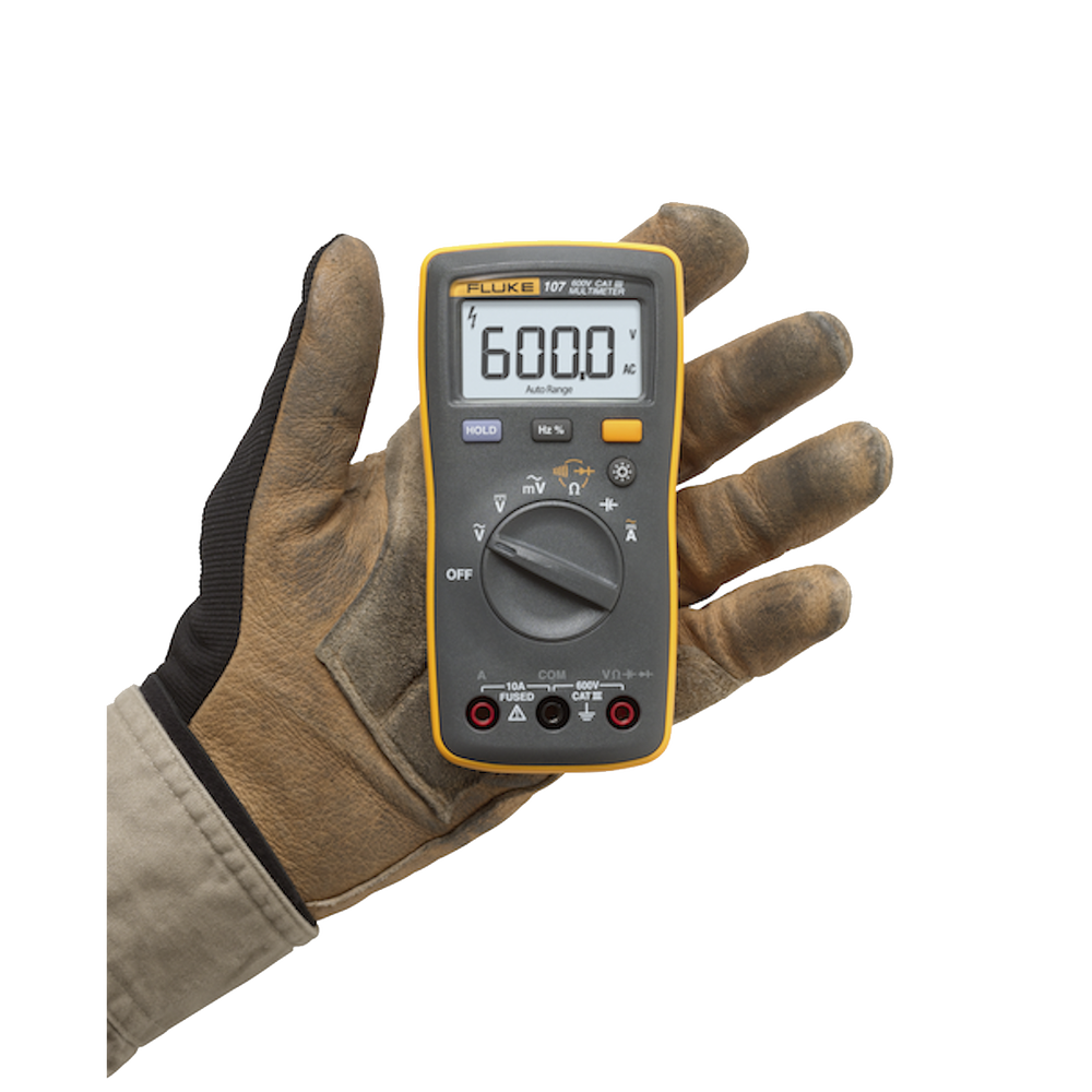 El Fluke 107 es un multímetro digital compacto y fácil de usar diseñado para adaptarse a su forma de trabajar. Es el instrumento perfecto para la resolución de problemas a la primera: cabe en el bolsillo o en la bolsa de trabajo y es lo bastante resistente para soportar el uso diario y muy fácil de usar. Todo ello sin comprometer la seguridad. Para aplicaciones cotidianas en las que no se necesita precisión de verdadero valor eficaz, el Fluke 107 proporciona medidas fiables en todo momento.