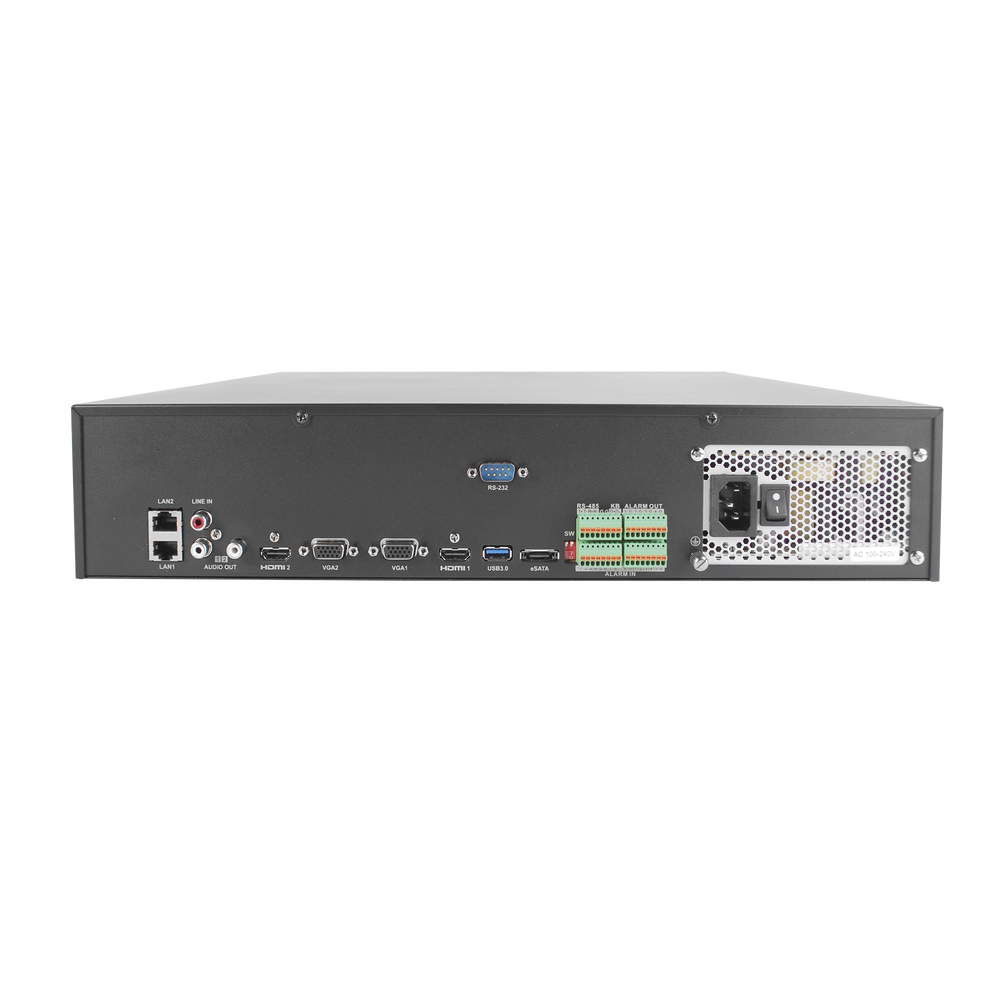 NVR 12 Megapixel (4K) / 32 Canales IP / Soporta Cámaras con AcuSense / 8 Bahías de Disco Duro / 2 Tarjetas de Red / Soporta RAID con Hot Swap / HDMI en 4K / Soporta POS