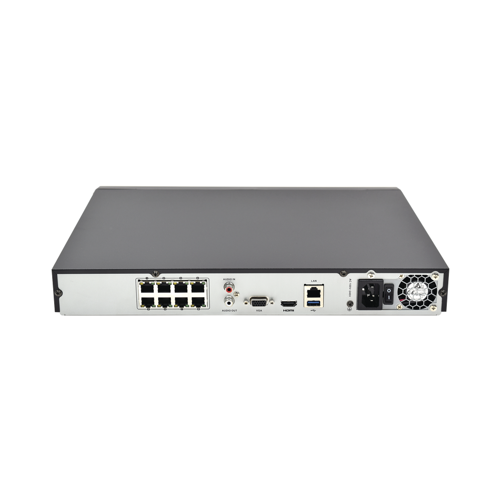 NVR 5 Megapixel / 8 canales IP / 8 Puertos PoE+ / 2 Bahías de Disco Duro / H.264+