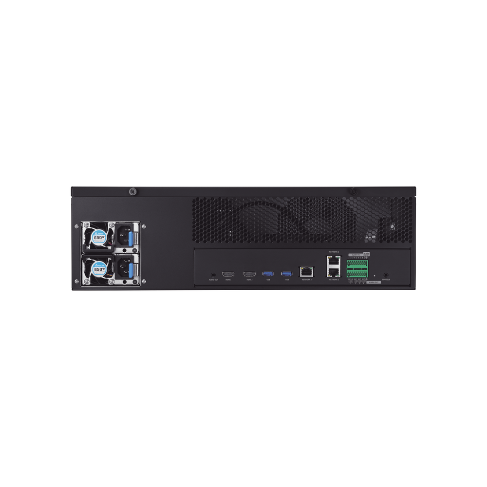 NVR de 64 canales / Hasta 32 MP / H.265 & Wisestream / Procesamiento 400 Mbps / 3 Puertos de Red / Raid 5-6 / 16 bahias para disco duro (no incluidos)